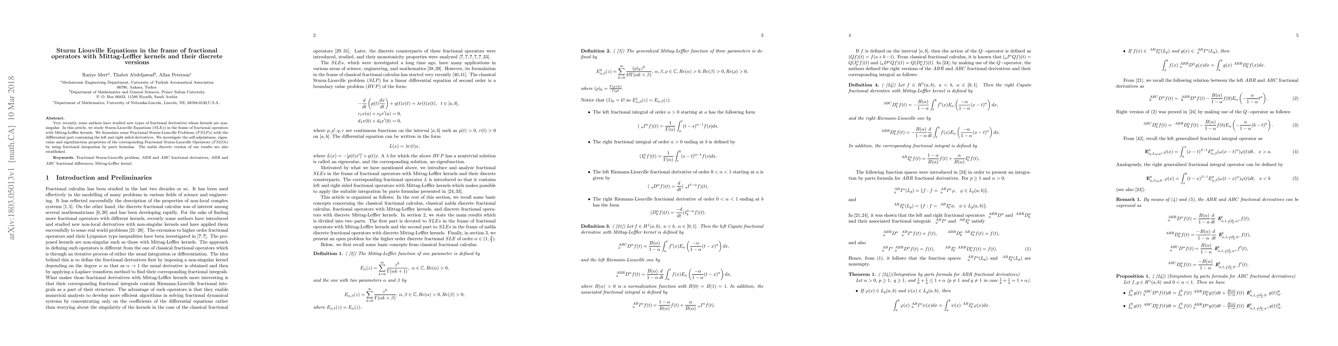 This paper explores Sturm-Liouville Equations using fractional operators with Mittag-Leffler kernels, investigating their self-adjointness, eigenvalue, and eigenfunction properties. It also establishes the nabla discrete version of these results.