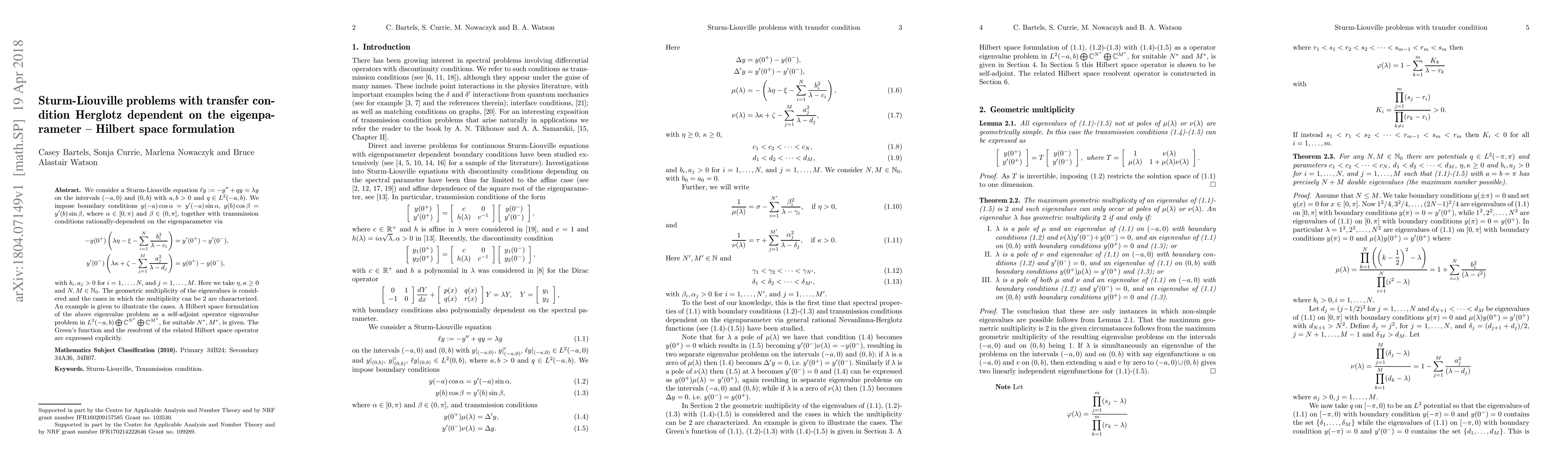 We consider a Sturm-Liouville equation $\ell y:=-y'' + qy = \lambda y$ on the intervals $(-a,0)$ and $(0,b)$ with $a,b>0$ and $q \in L^2(-a,b)$. We impose boundary conditions $y(-a)\cos\alpha = y'(-a)\sin\alpha$, $y(b)\cos\beta = y'(b)\sin\beta$, where $\alpha \in [0,\pi)$ and $\beta \in (0,\pi]$, together with transmission conditions rationally-dependent on the eigenparameter via \begin{align*} -y(0^+)\left(\lambda \eta -\xi-\sum\limits_{i=1}^{N} \frac{b_i^2}{\lambda -c_i}\right) &= y'(0^+) - y'(0^-),\\ y'(0^-)\left(\lambda \kappa +\zeta-\sum\limits_{j=1}^{M}\frac{a_j^2}{\lambda -d_j}\right) &= y(0^+) - y(0^-), \end{align*} with $b_i, a_j>0$ for $i=1,\dots,N,$ and $j=1,\dots,M$. Here we take $\eta, \kappa \ge 0$ and $N,M\in \N_0$. The geometric multiplicity of the eigenvalues is considered and the cases in which the multiplicity can be $2$ are characterized. An example is given to illustrate the cases. A Hilbert space formulation of the above eigenvalue problem as a self-adjoint operator eigenvalue problem in $L^2(-a,b)\bigoplus \C^{N^*} \bigoplus \C^{M^*}$, for suitable $N^*,M^*$, is given. The Green's function and the resolvent of the related Hilbert space operator are expressed explicitly.