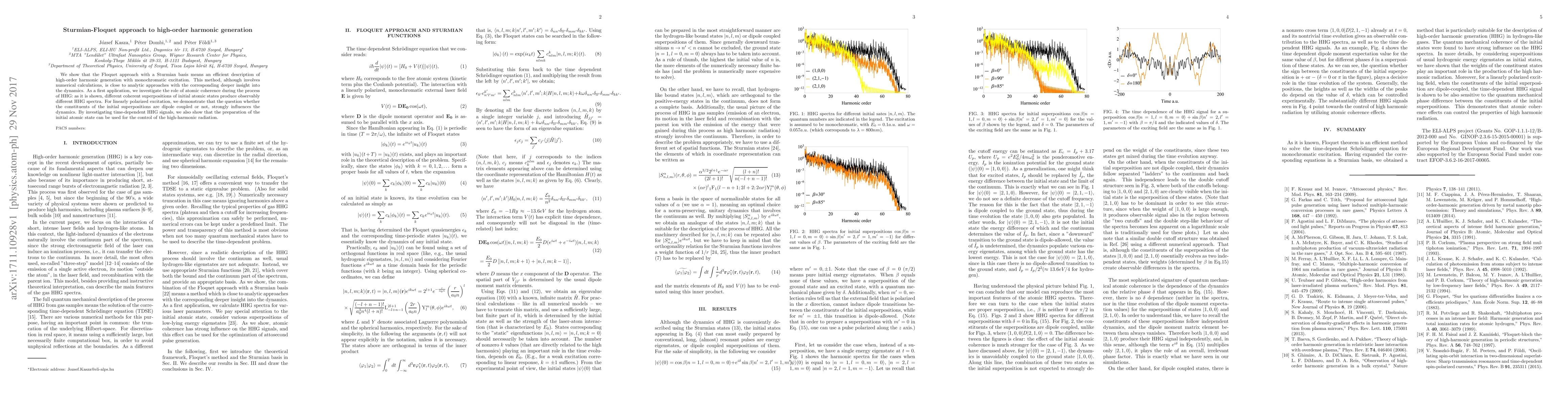 We show that the Floquet approach with a Sturmian basis means an efficient description of high-order harmonic generation with monochromatic excitation. This method, although involves numerical calculations, is close to analytic approaches with the corresponding deeper insight into the dynamics. As a first application, we investigate the role of atomic coherence during the process of HHG: as it is shown, different coherent superpositions of initial atomic states produce observably different HHG spectra. For linearly polarized excitation, we demonstrate that the question whether the constituents of the initial superpositions are dipole coupled or not, strongly influences the dynamics. By investigating time-dependent HHG signals, we also show that the preparation of the initial atomic state can be used for the control of the high-harmonic radiation.