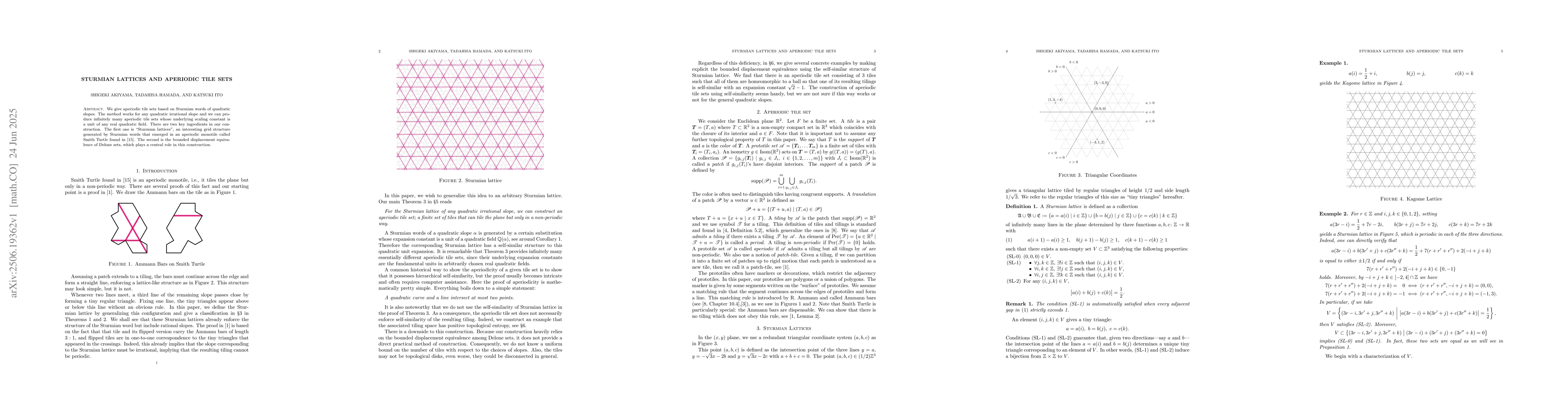 We give aperiodic tile sets based on Sturmian words of quadratic slopes. The method works for any quadratic irrational slope and we can produce infinitely many aperiodic tile sets whose underlying scaling constant is a unit of any real quadratic field. There are two key ingredients in our construction. The first one is ``Sturmian lattices'', an interesting grid structure generated by Sturmian words that emerged in an aperiodic monotile called Smith Turtle.The second is the bounded displacement equivalence of Delone sets, which plays a central role in this construction.