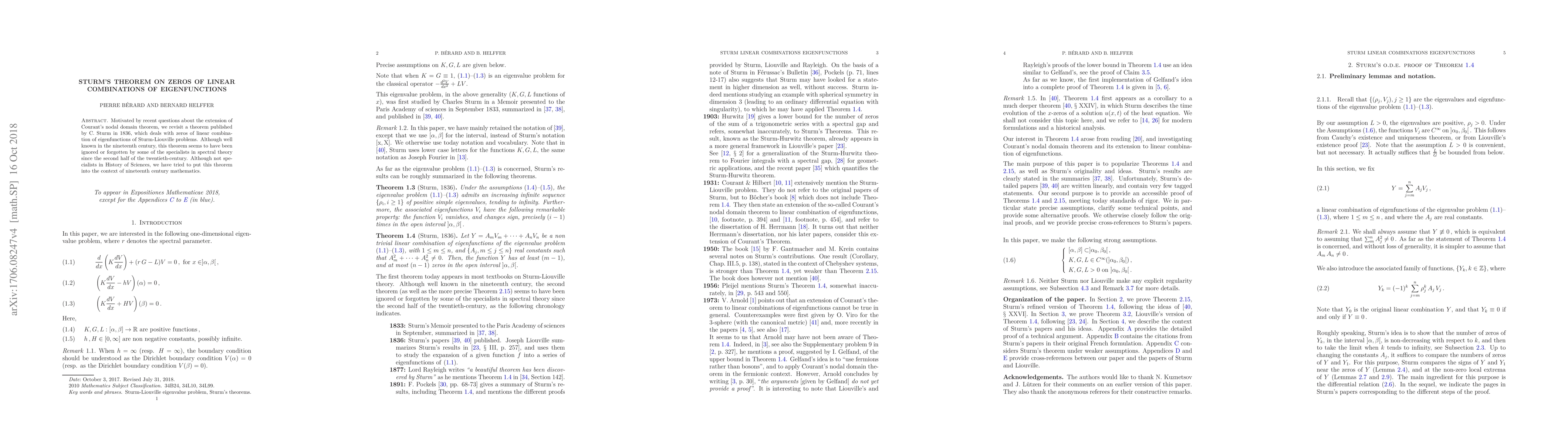 Summary: Sturm's 1836 theorem on the zeros of linear combinations of eigenfunctions of Sturm-Liouville problems is revisited, highlighting its relevance to modern spectral theory and its historical context in nineteenth-century mathematics. The paper aims to reintroduce this theorem for contemporary specialists.