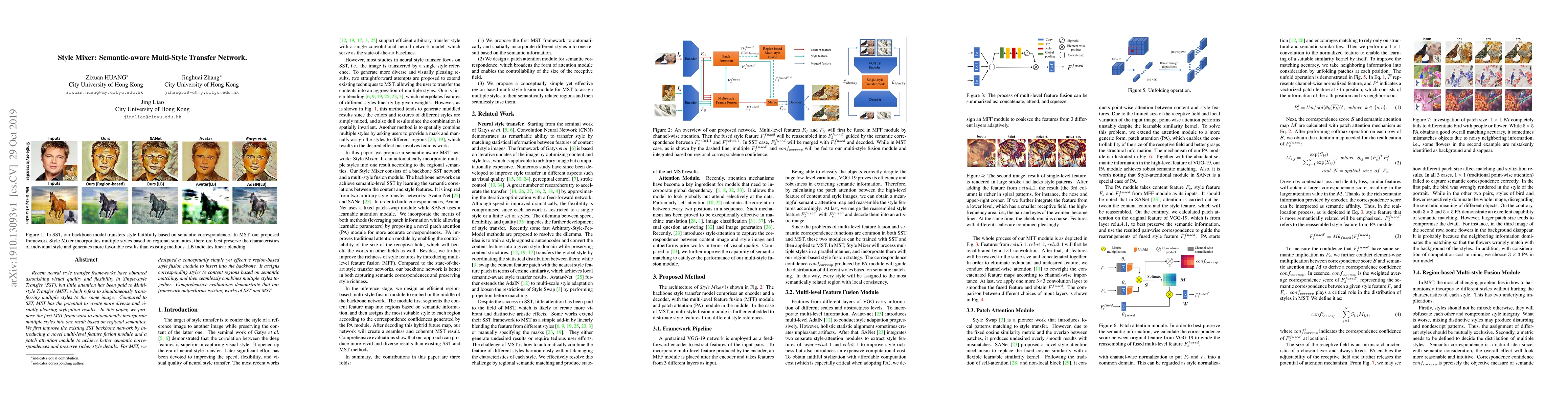 The paper introduces a novel Multi-style Transfer (MST) framework that enhances neural style transfer by simultaneously incorporating multiple styles into a single image based on regional semantics. The proposed method improves upon existing Single-style Transfer (SST) techniques using a multi-level feature fusion module and a patch attention mechanism, achieving better semantic correspondence and richer style details.