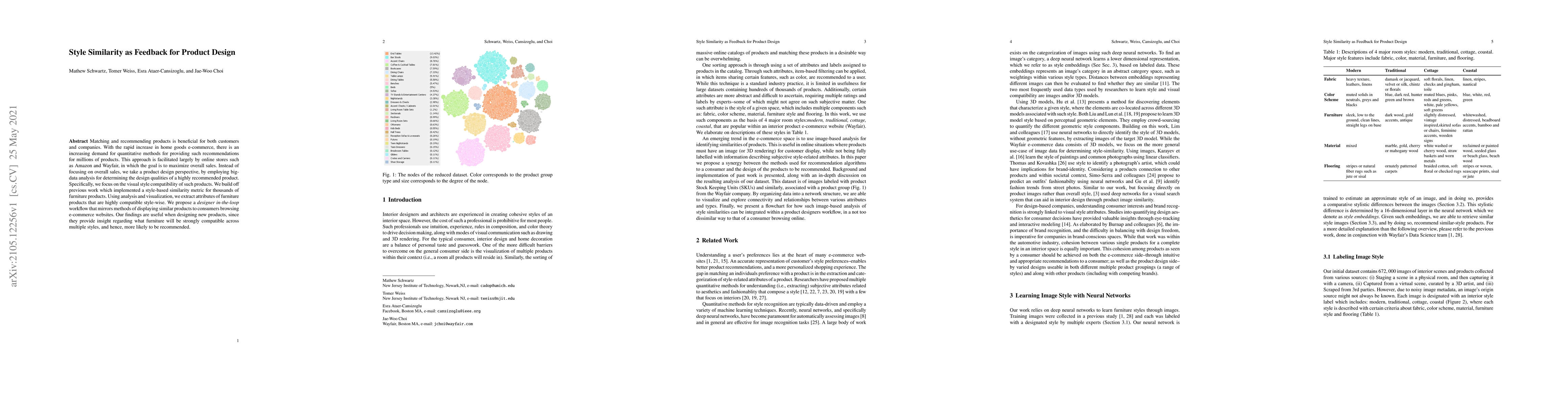 This paper explores using big-data analysis to identify visual style compatibility among furniture products, aiming to provide insights for product design. It proposes a designer-assisted workflow to recommend products based on style similarity, offering valuable guidance for creating furniture that is likely to be cross-style compatible and recommended.