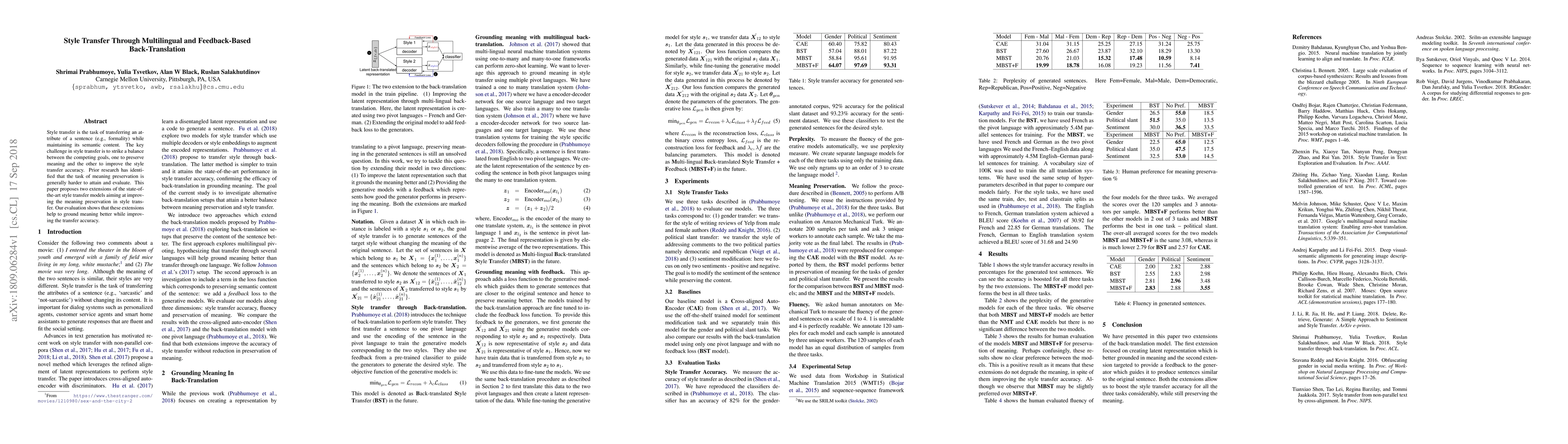 This paper proposes enhancements to style transfer models using multilingual and feedback-based back-translation to better preserve meaning while improving transfer accuracy. Evaluations demonstrate that these methods effectively ground meaning better in the transferred styles.