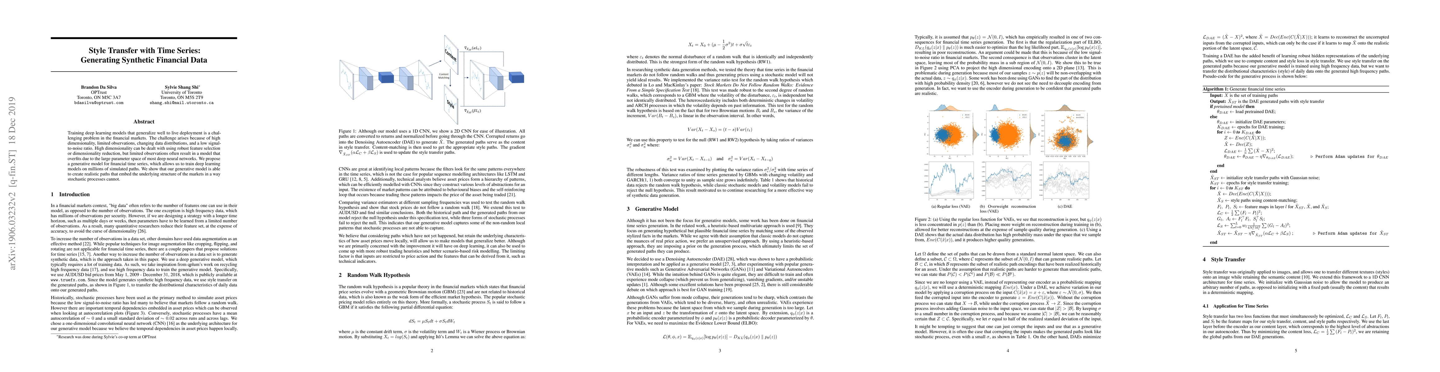 Training deep learning models that generalize well to live deployment is a challenging problem in the financial markets. The challenge arises because of high dimensionality, limited observations, changing data distributions, and a low signal-to-noise ratio. High dimensionality can be dealt with using robust feature selection or dimensionality reduction, but limited observations often result in a model that overfits due to the large parameter space of most deep neural networks. We propose a generative model for financial time series, which allows us to train deep learning models on millions of simulated paths. We show that our generative model is able to create realistic paths that embed the underlying structure of the markets in a way stochastic processes cannot.