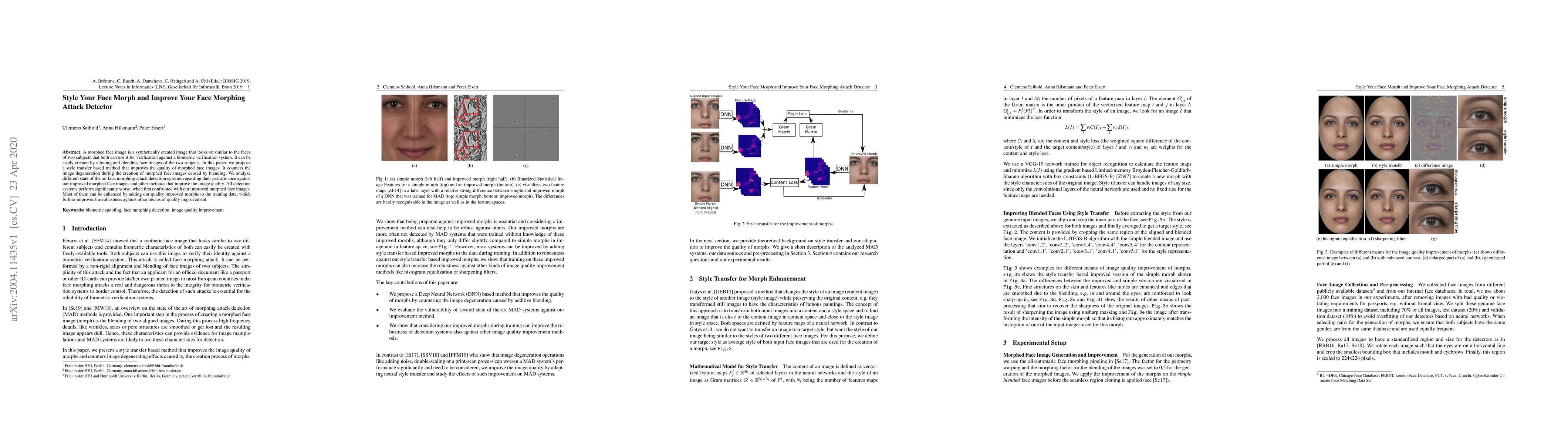 A morphed face image is a synthetically created image that looks so similar to the faces of two subjects that both can use it for verification against a biometric verification system. It can be easily created by aligning and blending face images of the two subjects. In this paper, we propose a style transfer based method that improves the quality of morphed face images. It counters the image degeneration during the creation of morphed face images caused by blending. We analyze different state of the art face morphing attack detection systems regarding their performance against our improved morphed face images and other methods that improve the image quality. All detection systems perform significantly worse, when first confronted with our improved morphed face images. Most of them can be enhanced by adding our quality improved morphs to the training data, which further improves the robustness against other means of quality improvement.