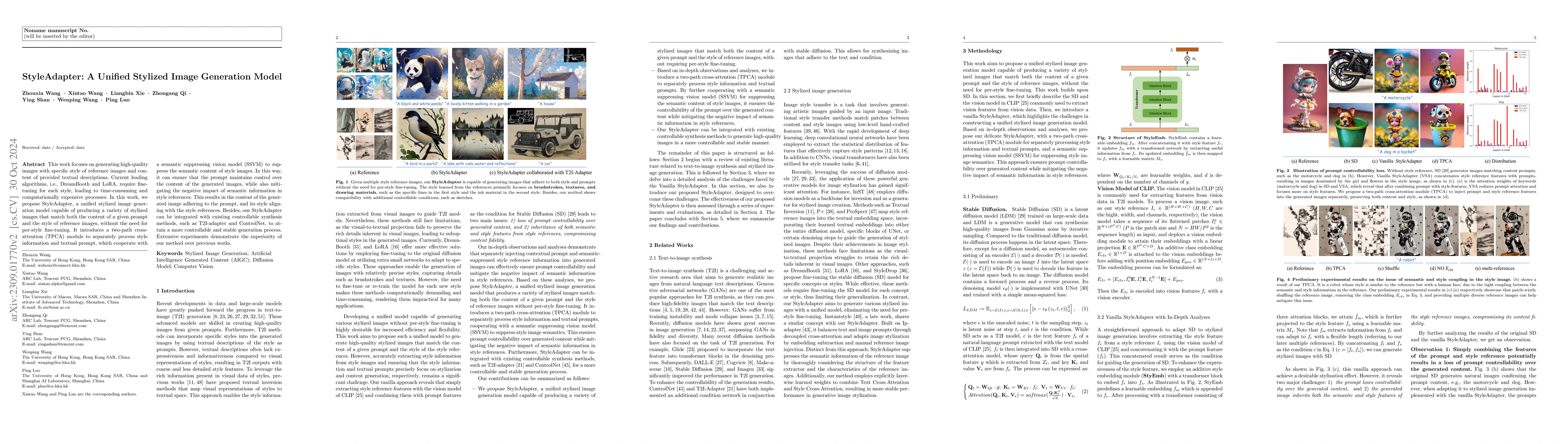 StyleAdapter is a LoRA-free method for generating stylized images in a single pass, addressing challenges of prompt controllability and content fidelity. It employs a two-path cross-attention module and decoupling strategies to separate semantic and style features, achieving high-quality results that match prompt content while adopting reference styles.