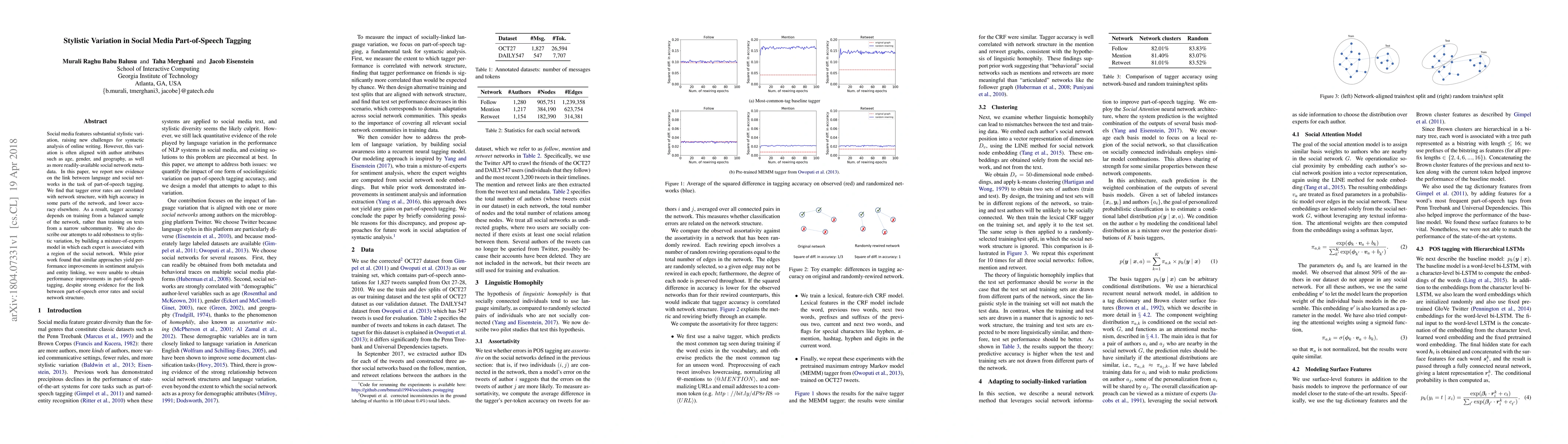 This paper investigates how stylistic variation in social media affects part-of-speech tagging accuracy, finding that tagging errors correlate with social network structure. Despite attempts to improve tagging with a mixture-of-experts model, no performance gains were achieved, highlighting the need for balanced network training data.