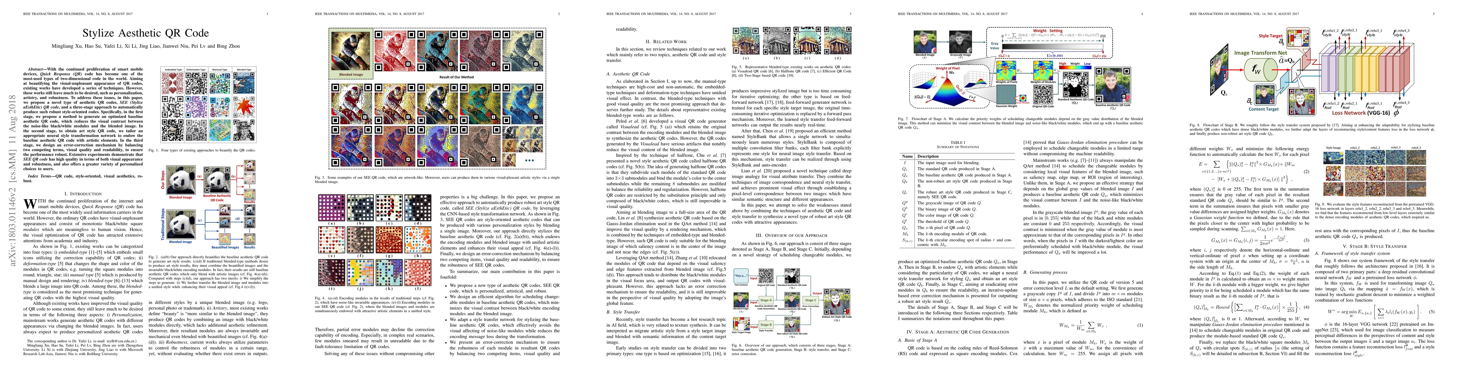 This paper proposes SEE QR codes, a novel type of aesthetic QR code that enhances visual appeal and personalization through a three-stage approach: optimizing baseline aesthetic codes, applying neural style transformations for artistic elements, and balancing error-correction for robustness. Extensive experiments show high visual quality and robust performance.