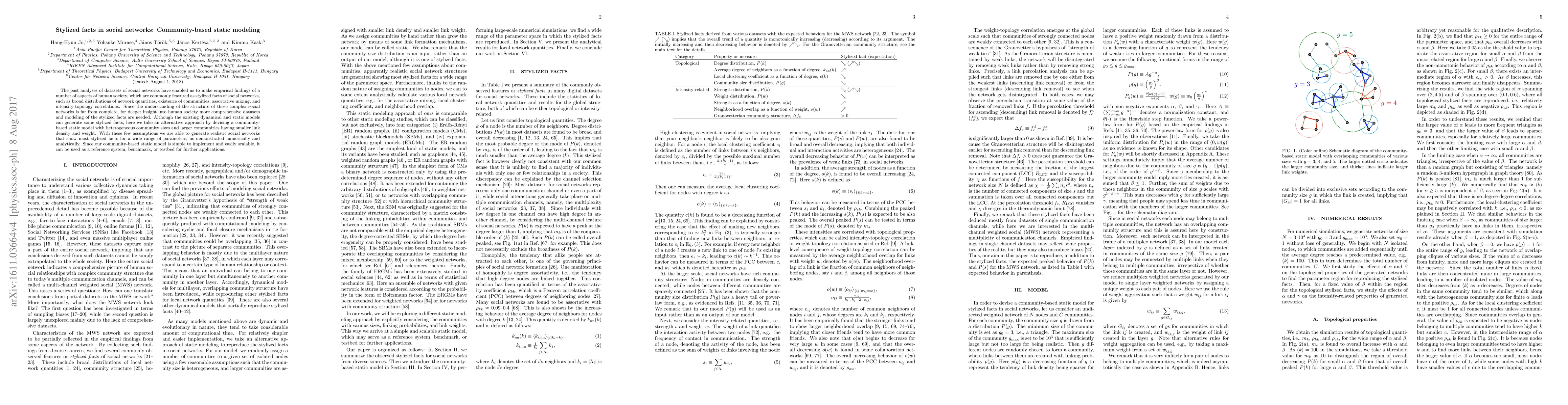 This paper presents a community-based static model to generate realistic social networks that exhibit common stylized facts, such as broad distributions and community structures. The model, characterized by heterogeneous community sizes and varying link densities, provides a scalable and simple framework for studying social network dynamics.
