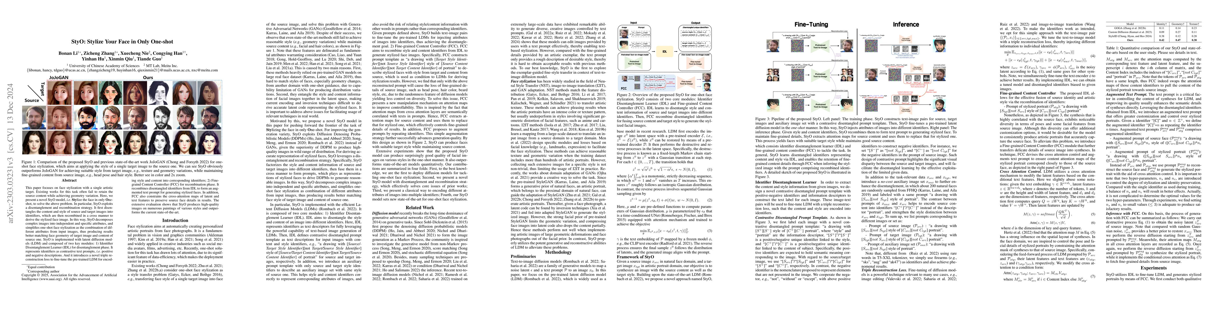 StyO presents a novel disentanglement and recombination strategy for one-shot face stylization using latent diffusion models, which includes an Identifier Disentanglement Learner (IDL) and a Fine-grained Content Controller (FCC).