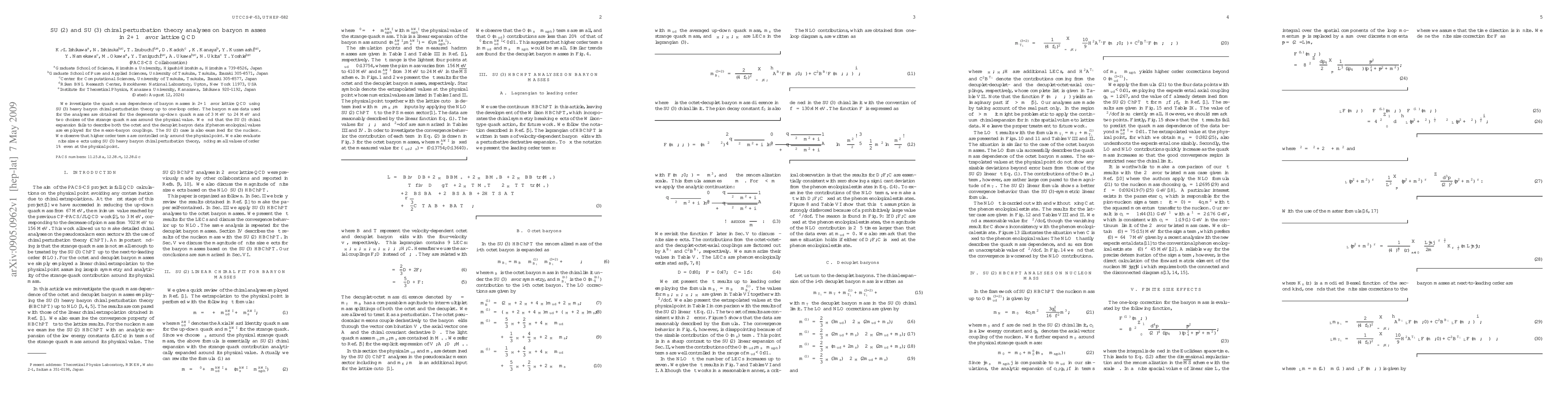 This paper analyzes the quark mass dependence of baryon masses in 2+1 flavor lattice QCD using SU(3) heavy baryon chiral perturbation theory, finding that the SU(3) expansion fails to describe baryon data without adjusting meson-baryon couplings. The study also examines the SU(2) case for nucleons and finds higher-order terms are manageable near the physical point, with finite size effects evaluated to be small (around 1%).
