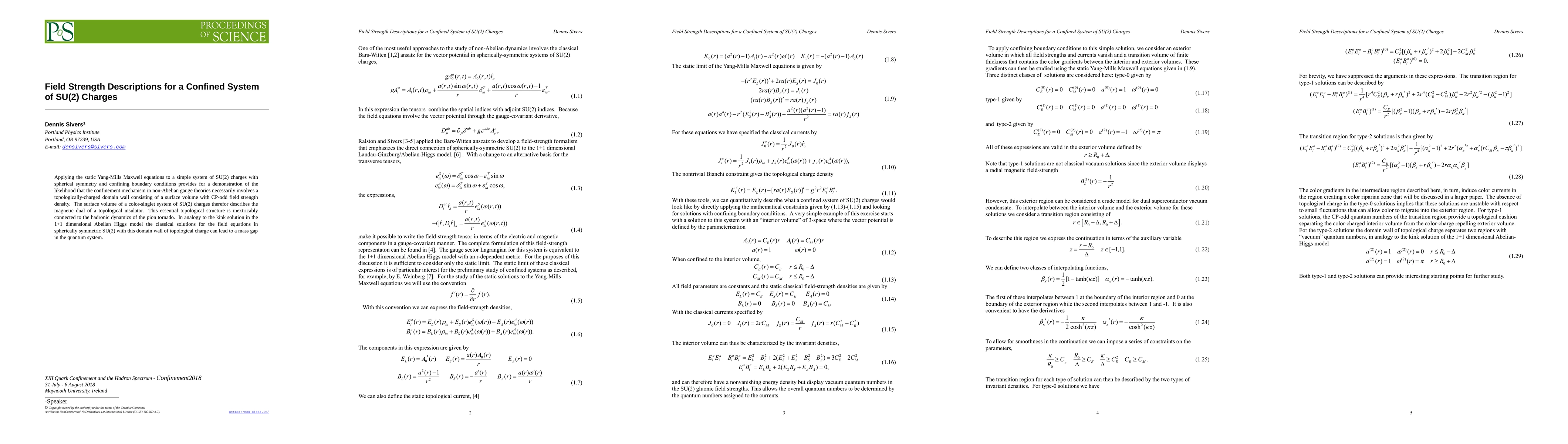 This paper demonstrates that SU(2) charges with spherical symmetry and confining boundary conditions likely involve a topologically-charged domain wall, analogous to a magnetic dual of a topological insulator, which is essential for the hadronic dynamics and leads to a mass gap in the quantum system.