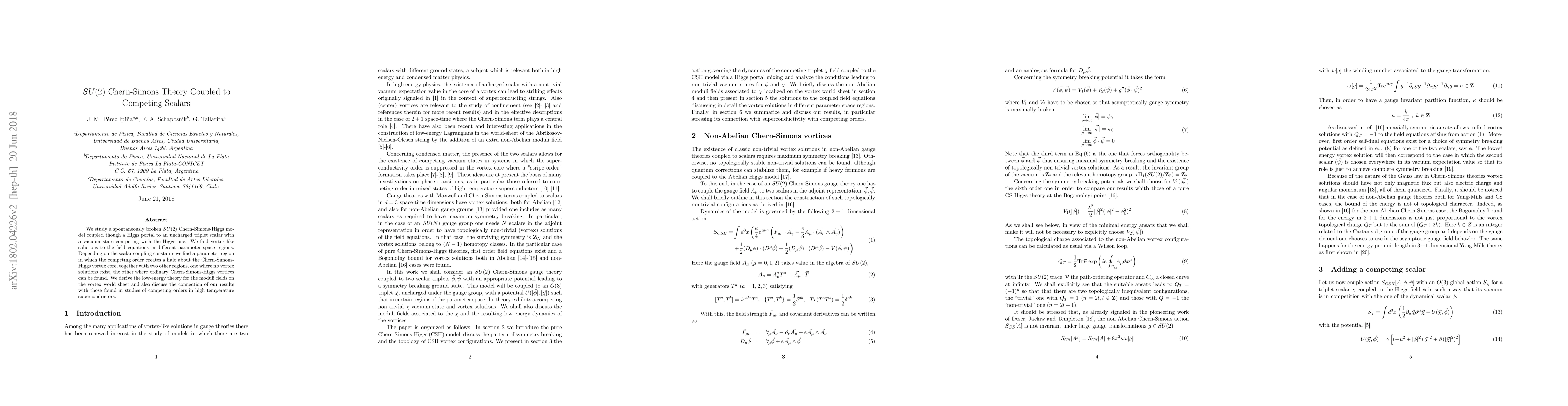 This paper explores an SU(2) Chern-Simons-Higgs model with an additional uncharged triplet scalar, revealing vortex-like solutions in different parameter regions. It identifies a parameter region where a competing order forms a halo around the vortex core, contrasting with regions lacking vortex solutions or containing ordinary vortices.