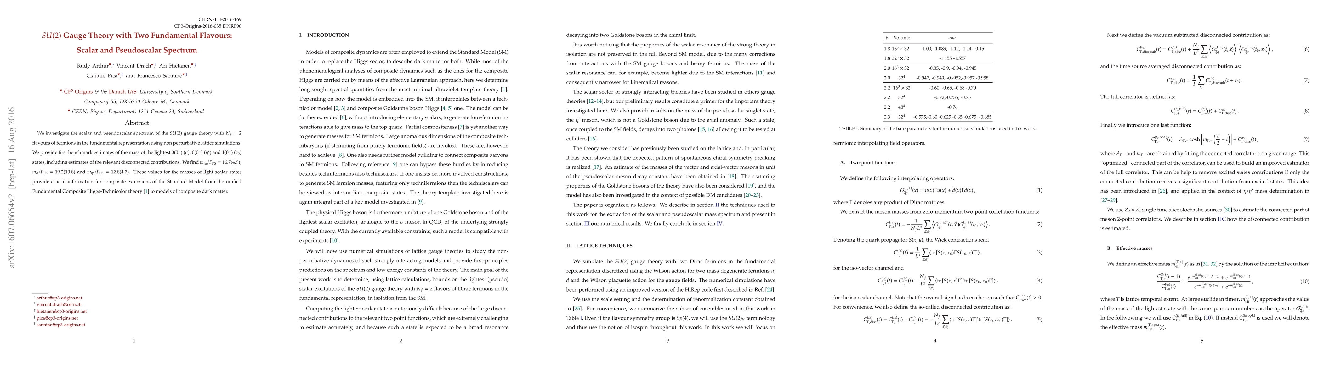 This study investigates the scalar and pseudoscalar spectrum of an $SU(2)$ gauge theory with 2 fundamental flavours using non-perturbative lattice simulations, providing benchmark estimates for the masses of key states and shedding light on composite extensions of the Standard Model.