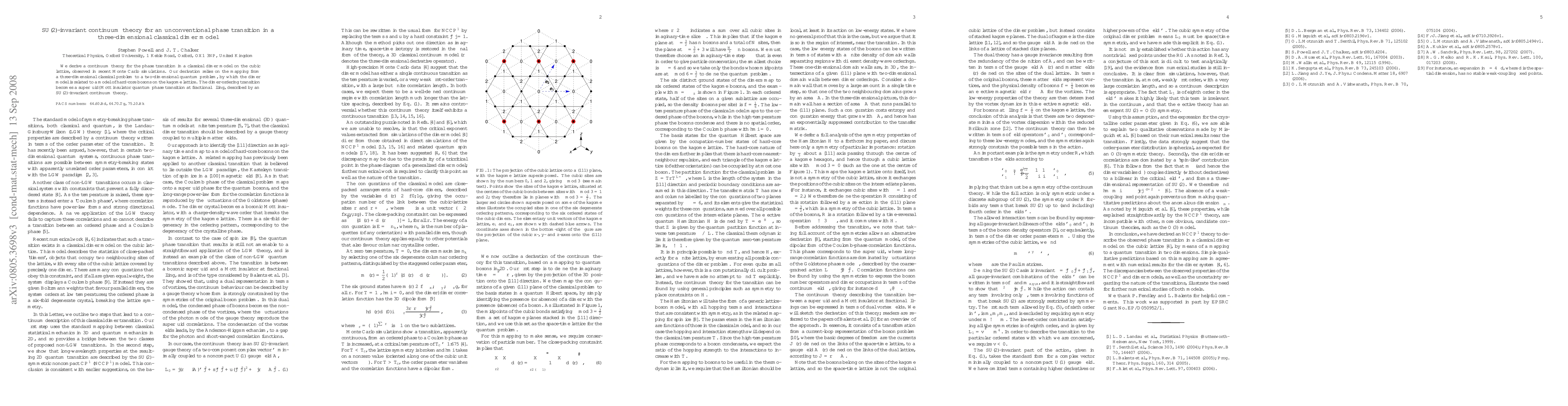This paper develops a continuum theory for a phase transition in a three-dimensional classical dimer model, mapping it to a two-dimensional quantum problem of hard-core bosons on the kagome lattice, and describes the transition as an SU(2)-invariant superfluid-Mott insulator phase transition.