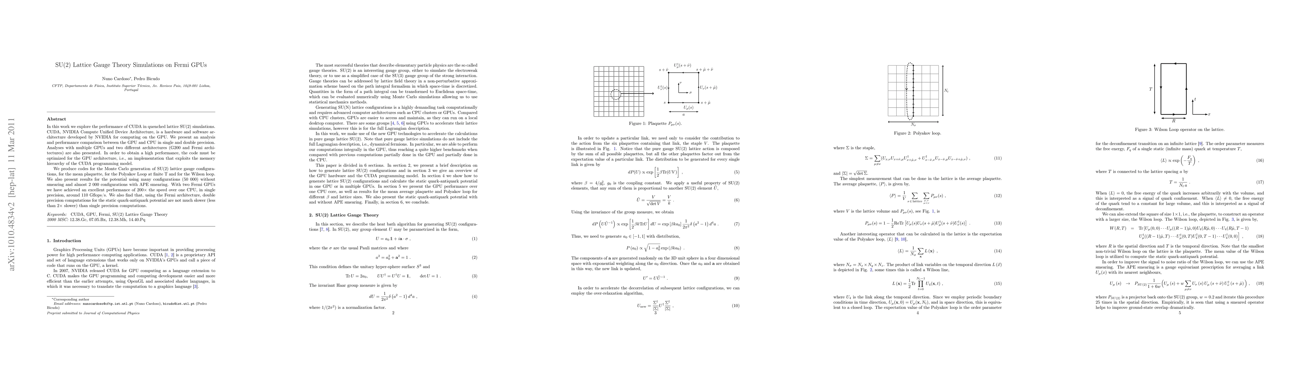 This paper investigates the performance of CUDA on Fermi GPUs for SU(2) lattice gauge theory simulations, achieving a 200x speedup over a single CPU in single precision. The study also finds that double precision computations on Fermi GPUs are only marginally slower than single precision.