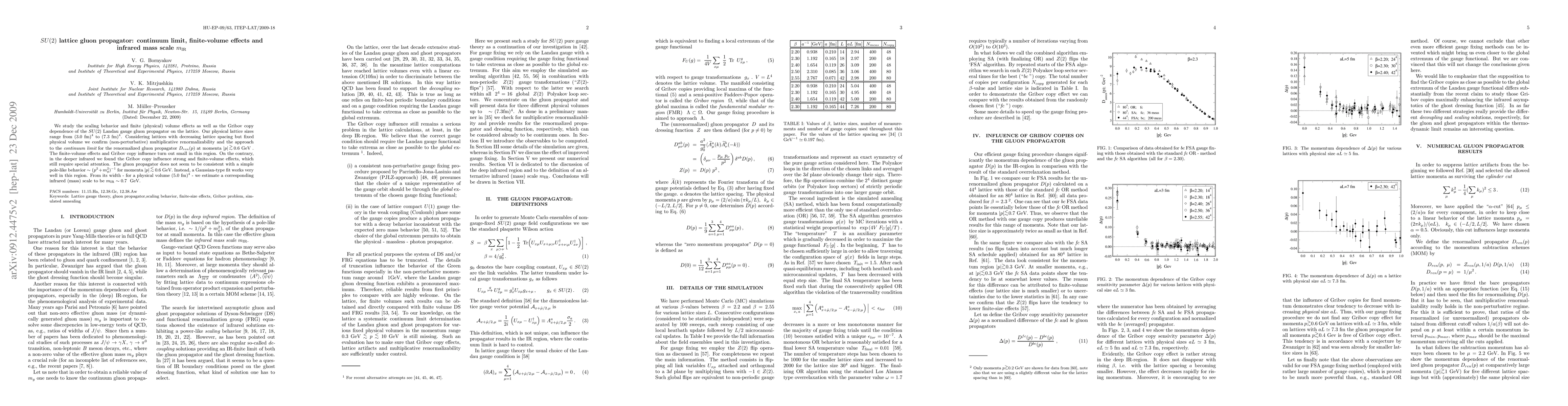 We study the scaling behavior and finite (physical) volume effects as well as the Gribov copy dependence of the SU(2) Landau gauge gluon propagator on the lattice. Our physical lattice sizes range from $(3.0 \mathrm{fm})^4$ to $(7.3 \mathrm{fm})^4$. Considering lattices with decreasing lattice spacing but fixed physical volume we confirm (non-perturbative) multiplicative renormalizability and the approach to the {\it continuum limit} for the renormalized gluon propagator $D_{ren}(p)$ at momenta $|p| \ageq 0.6$ GeV >. The finite-volume effects and Gribov copy influence turn out small in this region. On the contrary, in the deeper infrared we found the Gribov copy influence strong and finite-volume effects, which still require special attention. The gluon propagator does not seem to be consistent with a simple pole-like behavior $\sim (p^2+m_g^2)^{-1}$ for momenta $|p| \aleq 0.6$ GeV. Instead, a Gaussian-type fit works very well in this region. From its width - for a physical volume $(5.0 \mathrm{fm})^4$ - we estimate a corresponding infrared (mass) scale to be $m_\mathrm{IR} \sim 0.7 $ GeV.