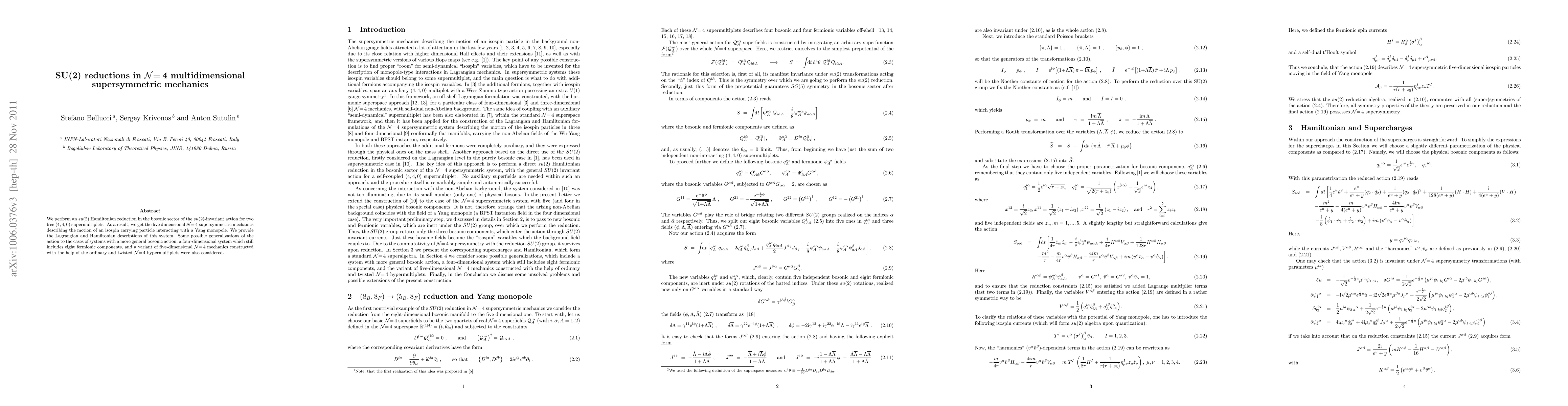 This paper details an su(2) Hamiltonian reduction of the bosonic sector of an su(2)-invariant action for two free supermultiplets, resulting in a five-dimensional N=4 supersymmetric mechanics describing an isospin particle interacting with a Yang monopole. The authors provide both Lagrangian and Hamiltonian formulations of this system and explore possible generalizations to broader bosonic actions and hypermultiplet variants.