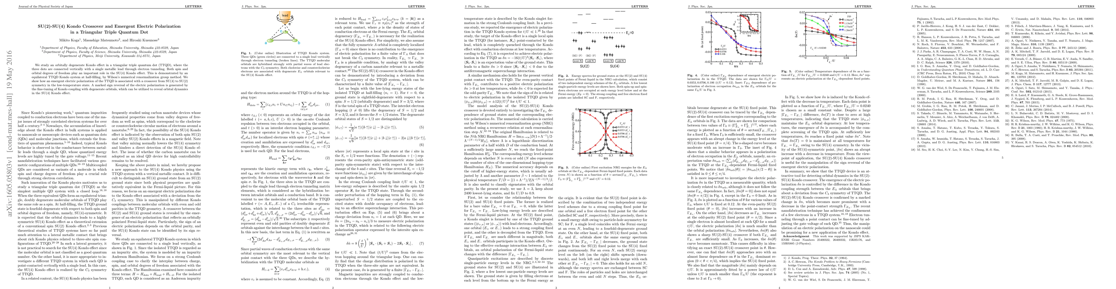 This research investigates the orbitally degenerate Kondo effect in a triangular triple quantum dot (TTQD), demonstrating how the system exhibits an emergent electric polarization associated with a crossover from SU(4) to SU(2) symmetry at low temperatures, revealing significant orbital dynamics.