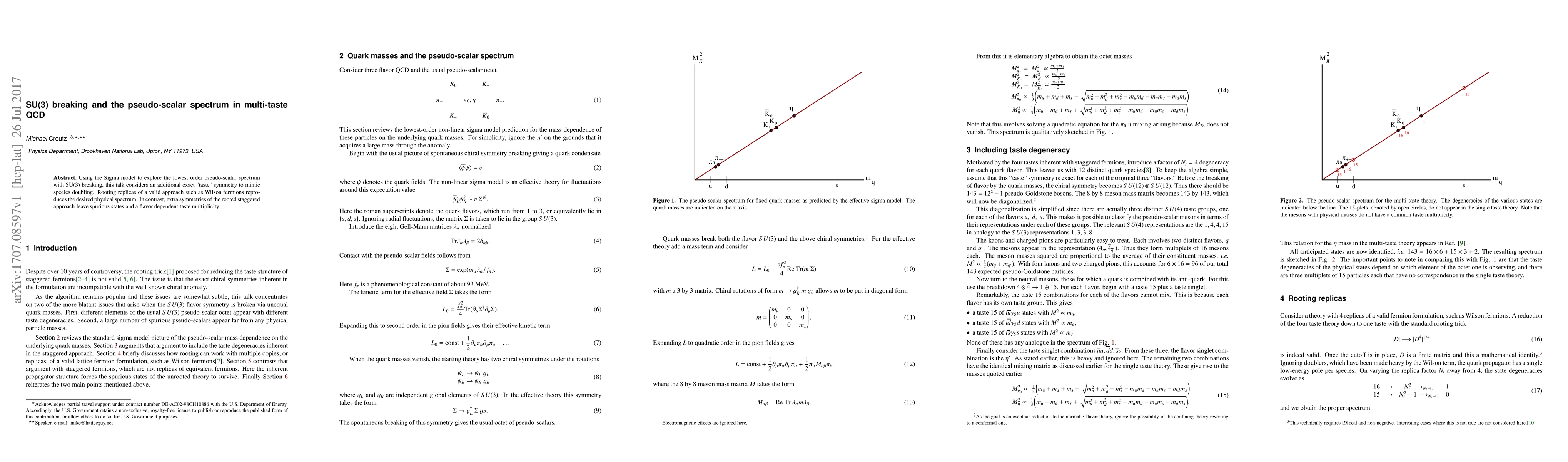 Using the Sigma model to explore the lowest order pseudo-scalar spectrum with SU(3) breaking, this talk considers an additional exact "taste" symmetry to mimic species doubling. Rooting replicas of a valid approach such as Wilson fermions reproduces the desired physical spectrum. In contrast, extra symmetries of the rooted staggered approach leave spurious states and a flavor dependent taste multiplicity.