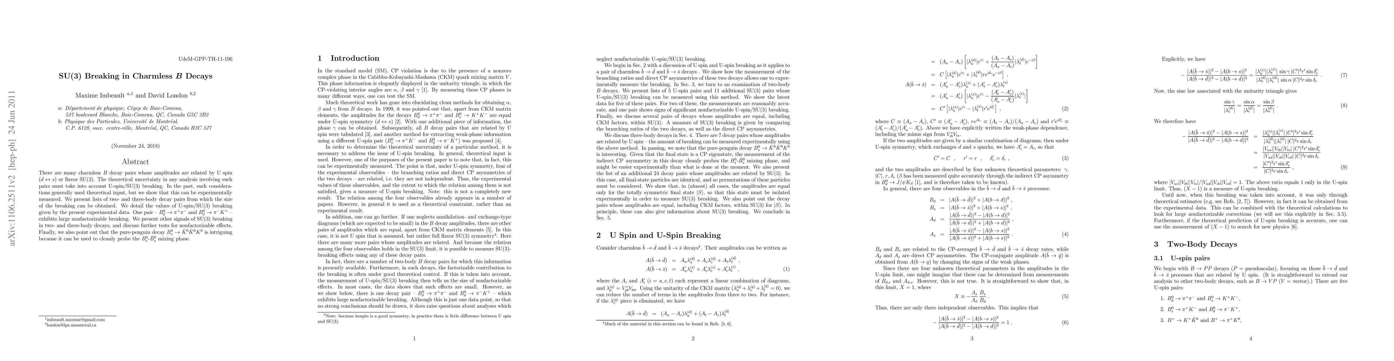 This paper investigates the breaking of SU(3) symmetry in charmless B decays, demonstrating that experimental data can measure U-spin/SU(3) breaking, which is crucial for theoretical analysis. It identifies specific decay pairs, such as Bd -> pi+ pi- and Bd -> pi- K+, showing significant nonfactorizable breaking and suggests further tests to explore these effects.