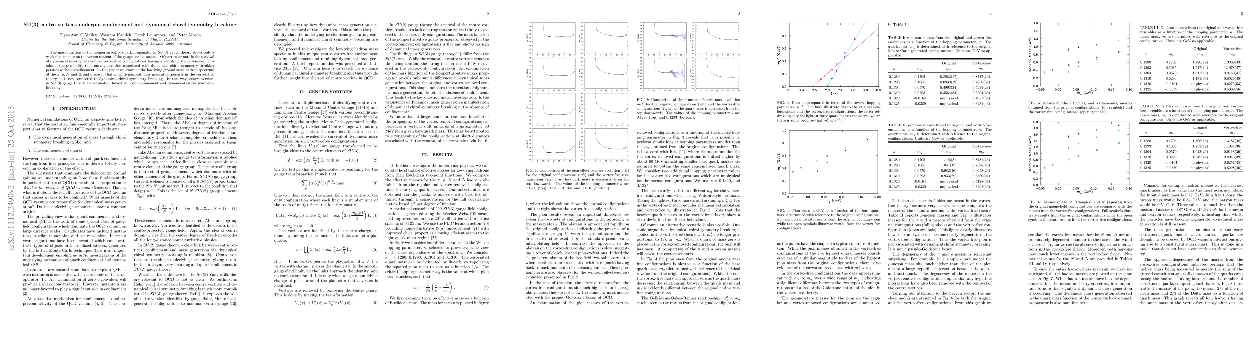 The paper finds that centre vortices in SU(3) gauge theory are crucial for both confinement and dynamical chiral symmetry breaking. While dynamical mass generation persists in vortex-free configurations, it does not connect to chiral symmetry breaking, highlighting the essential role of centre vortices in these phenomena.