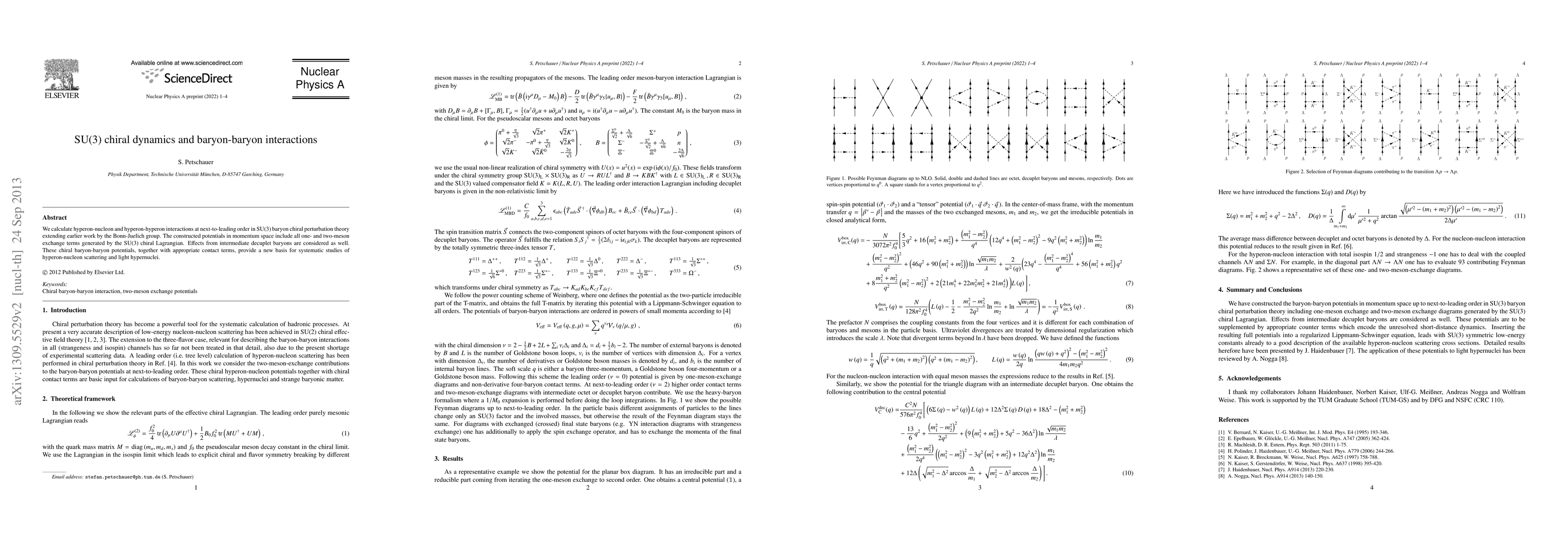 This paper develops hyperon-nucleon and hyperon-hyperon interaction potentials at next-to-leading order in SU(3) baryon chiral perturbation theory, incorporating one- and two-meson exchanges and decuplet baryon effects, to provide a new framework for hyperon-nucleon scattering and light hypernuclei studies.