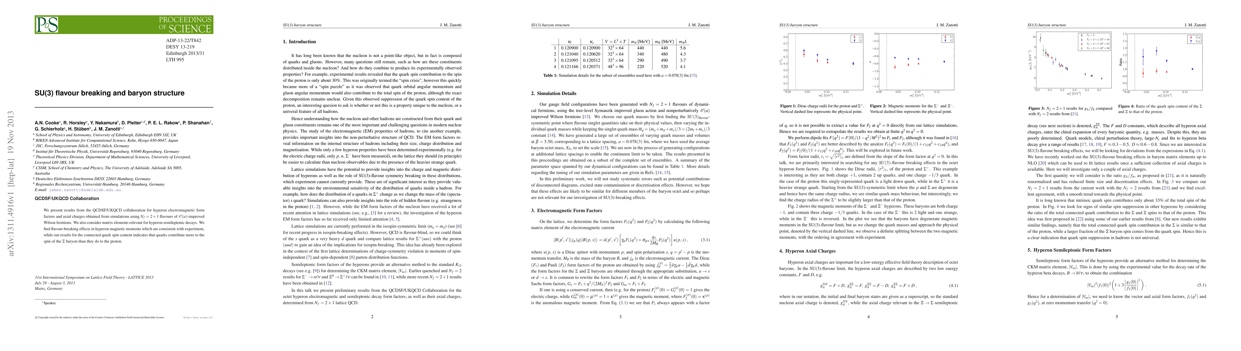 We present results from the QCDSF/UKQCD collaboration for hyperon electromagnetic form factors and axial charges obtained from simulations using Nf=2+1 flavours of O(a)-improved Wilson fermions. We also consider matrix elements relevant for hyperon semileptonic decays. We find flavour-breaking effects in hyperon magnetic moments which are consistent with experiment, while our results for the connected quark spin content indicates that quarks contribute more to the spin of the Xi baryon than they do to the proton.