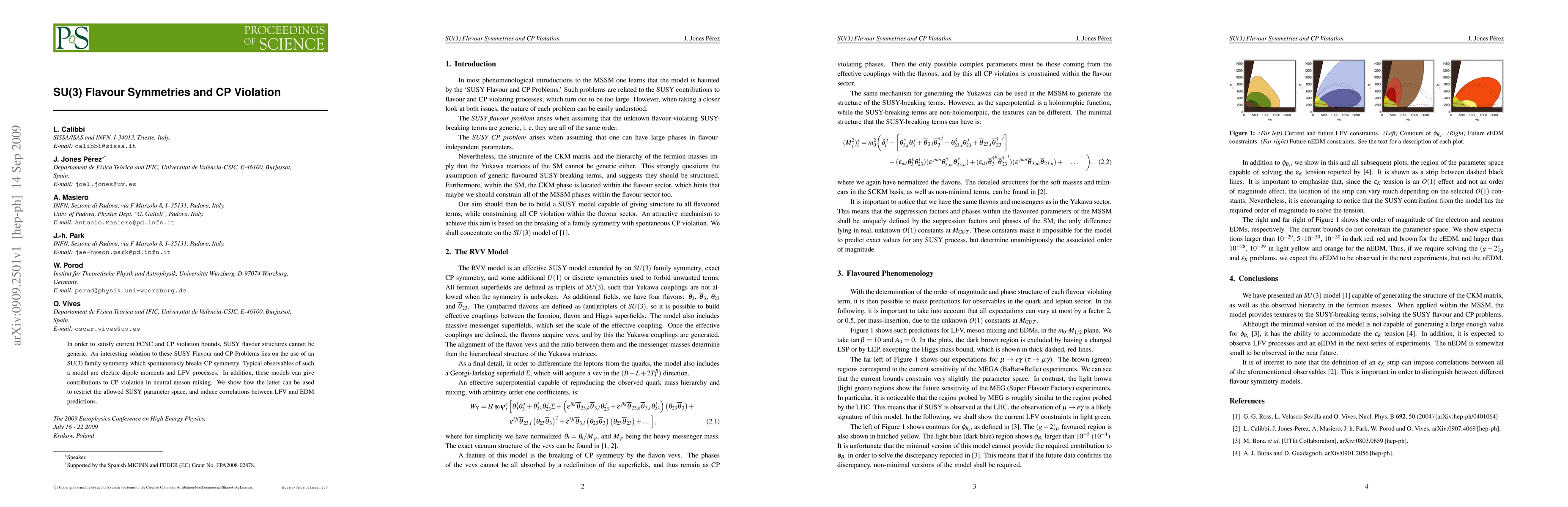 This research paper explores how an SU(3) flavour symmetry can help solve SUSY Flavour and CP Problems by breaking CP symmetry, and how it affects electric dipole moments, Leptof Filbuer Transitions (LFV), and neutral meson mixing.
