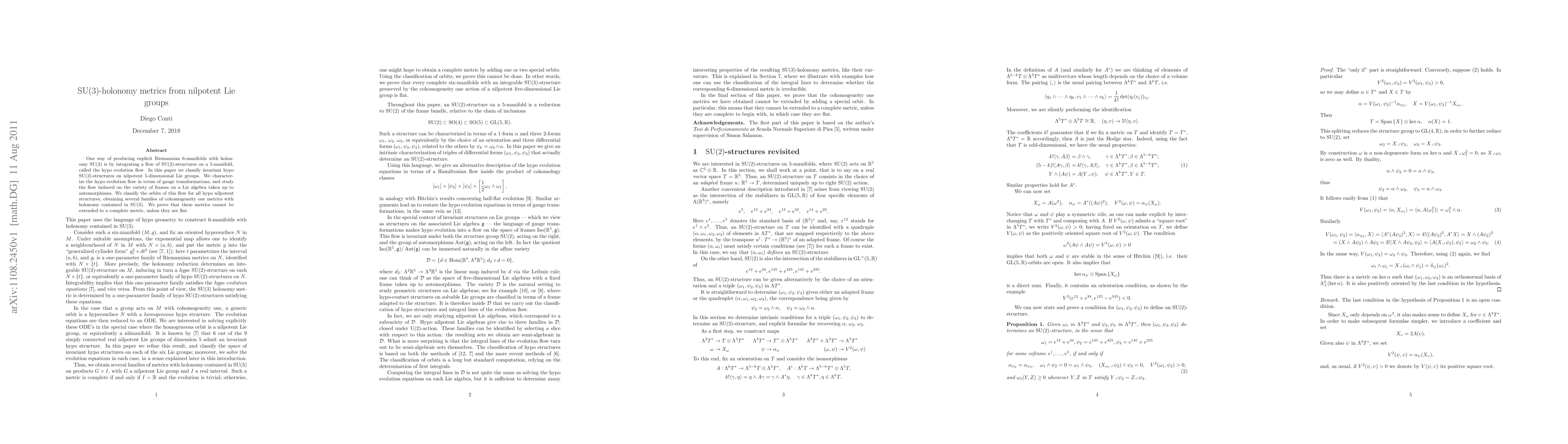 One way of producing explicit Riemannian 6-manifolds with holonomy SU(3) is by integrating a flow of SU(2)-structures on a 5-manifold, called the hypo evolution flow. In this paper we classify invariant hypo SU(2)-structures on nilpotent 5-dimensional Lie groups. We characterize the hypo evolution flow in terms of gauge transformations, and study the flow induced on the variety of frames on a Lie algebra taken up to automorphisms. We classify the orbits of this flow for all hypo nilpotent structures, obtaining several families of cohomogeneity one metrics with holonomy contained in SU(3). We prove that these metrics cannot be extended to a complete metric, unless they are flat.