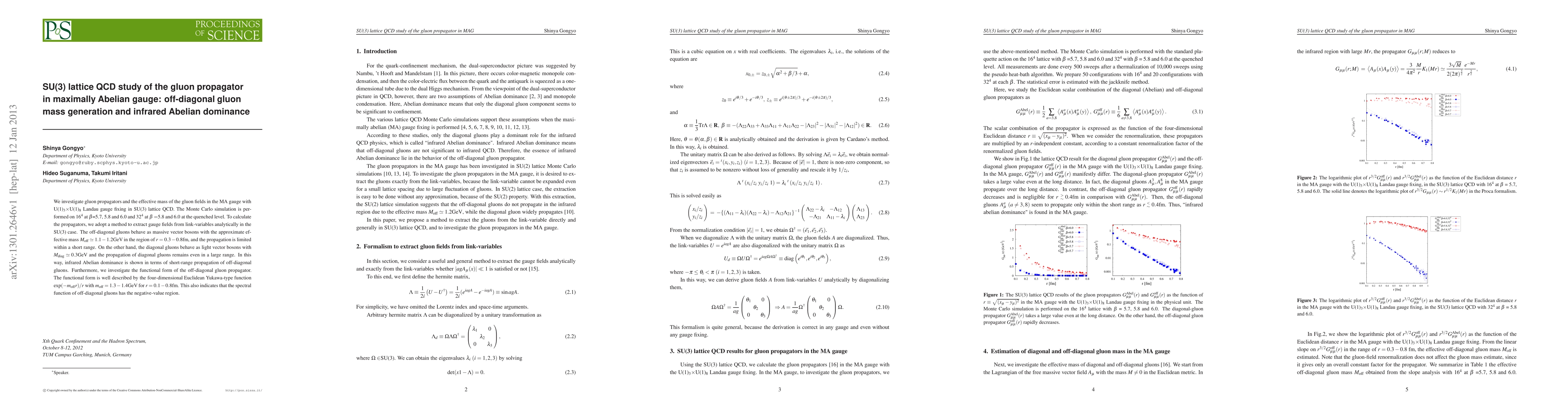 This study uses SU(3) lattice QCD in the maximally Abelian gauge to investigate gluon propagators, finding off-diagonal gluons behave as massive vector bosons with effective mass around 1.1-1.2 GeV, while diagonal gluons remain light and propagate over larger distances, demonstrating infrared Abelian dominance.