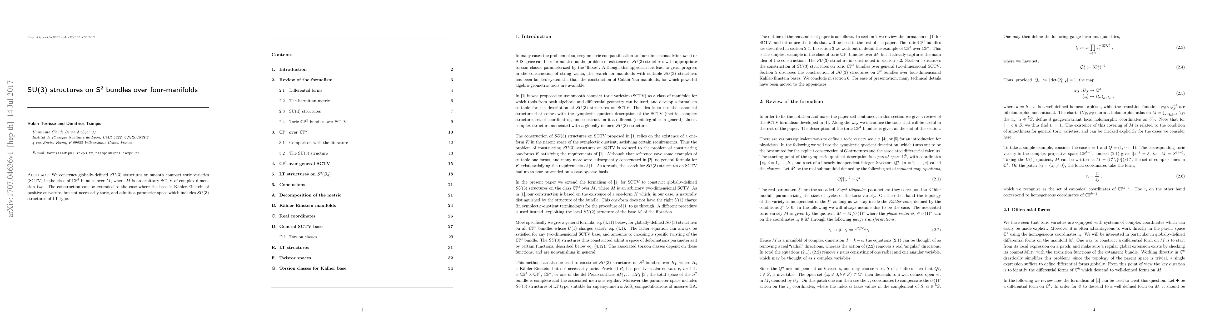 We construct globally-defined $SU(3)$ structures on smooth compact toric varieties (SCTV) in the class of $\mathbb{CP}^1$ bundles over $M$, where $M$ is an arbitrary SCTV of complex dimension two. The construction can be extended to the case where the base is K\"ahler-Einstein of positive curvature, but not necessarily toric, and admits a parameter space which includes $SU(3)$ structures of LT type.