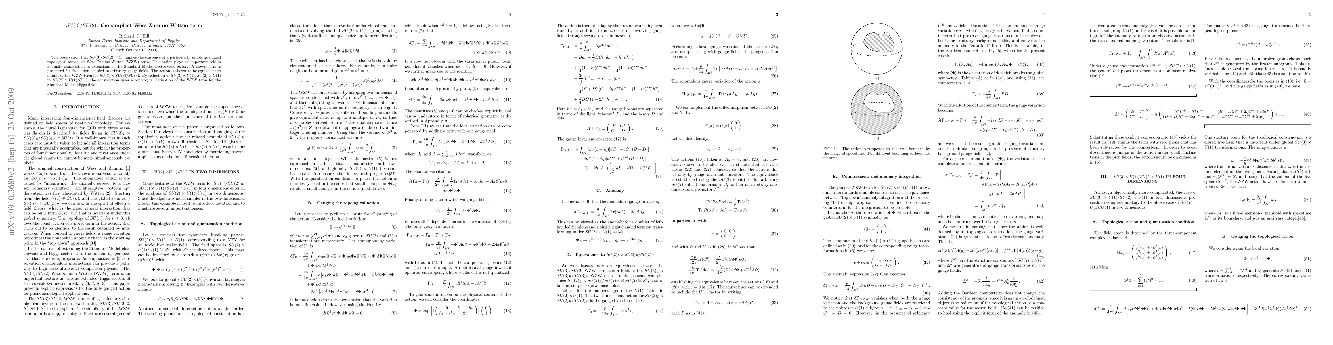 The observation that SU(3)/SU(2) ~ S^5 implies the existence of a particularly simple quantized topological action, or Wess-Zumino-Witten (WZW) term. This action plays an important role in anomaly cancellation in extensions of the Standard Model electroweak sector. A closed form is presented for the action coupled to arbitrary gauge fields. The action is shown to be equivalent to a limit of the WZW term for SU(3) x SU(3) / SU(3). By reduction of SU(3) x U(1) / SU(2) x U(1) to SU(2) x U(1) / U(1), the construction gives a topological derivation of the WZW term for the Standard Model Higgs field.