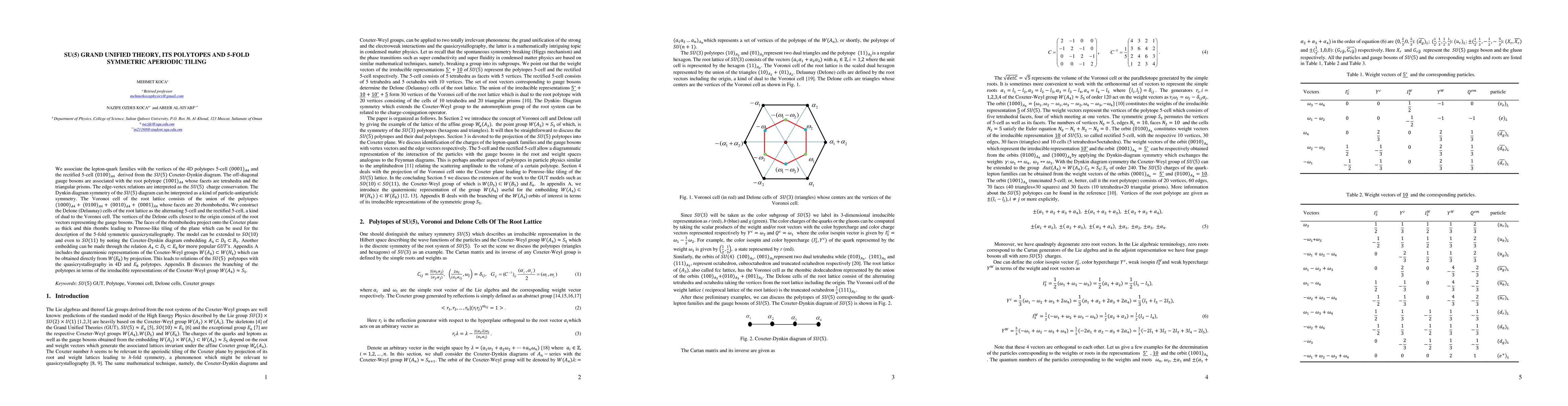 This paper proposes a Grand Unified Theory (GUT) based on SU(5), linking lepton-quark families to polytopes and using them to describe 5-fold symmetric tilings and quasicrystallography.