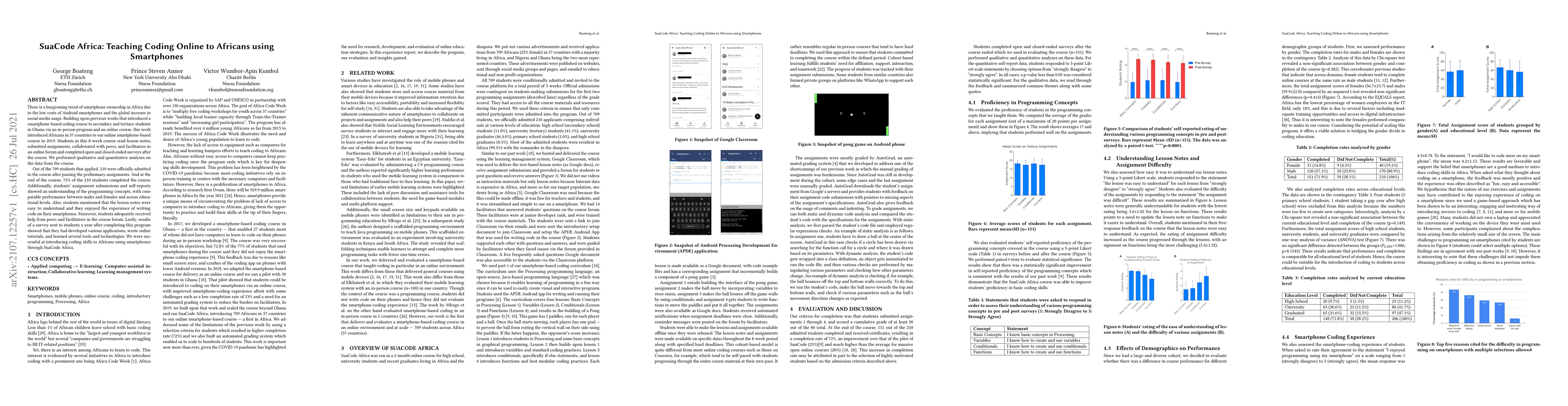 There is a burgeoning trend of smartphone ownership in Africa due to the low costs of Android smartphones and the global increase in social media usage. Building upon previous works that introduced a smartphone-based coding course to secondary and tertiary students in Ghana via an in-person program and an online course, this work introduced Africans in 37 countries to our online smartphone-based course in 2019. Students in this 8-week course read lesson notes, submitted assignments, collaborated with peers, and facilitators in an online forum and completed open and closed-ended surveys after the course. We performed qualitative and quantitative analyses on the data from the course. Out of the 709 students that applied, 210 were officially admitted to the course after passing the preliminary assignments. And at the end of the course, 72% of the 210 students completed the course. Additionally, students' assignment submissions and self-reports showed an understanding of the programming concepts, with comparable performance between males and females and across educational levels. Also, students mentioned that the lesson notes were easy to understand and they enjoyed the experience of writing code on their smartphones. Moreover, students adequately received help from peers and facilitators in the course forum. Lastly, results of a survey sent to students a year after completing this program showed that they had developed various applications, wrote online tutorials, and learned several tools and technologies. We were successful at introducing coding skills to Africans using smartphones through SuaCode Africa.