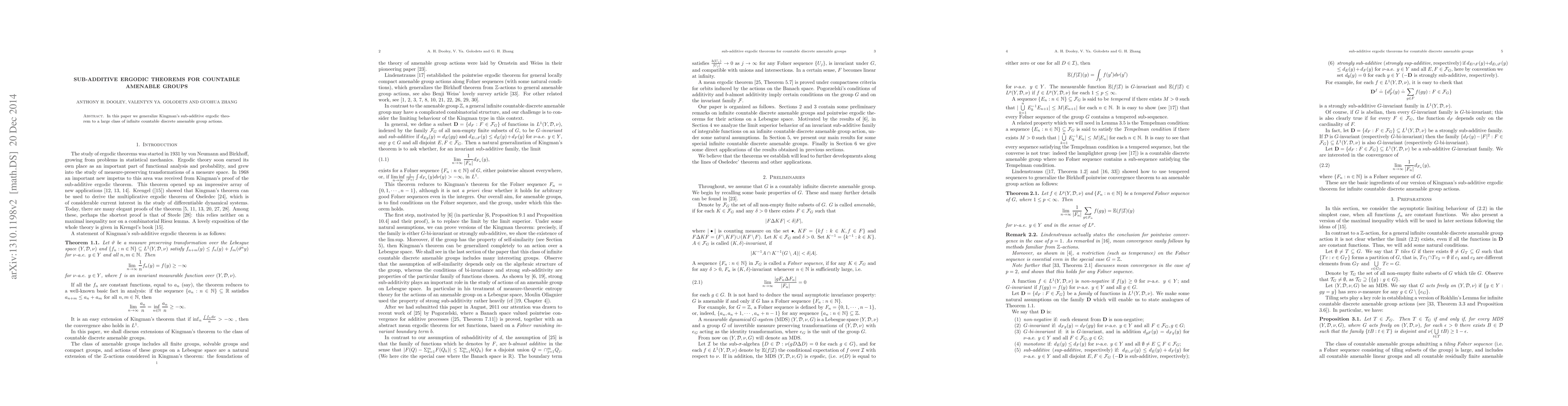 Summary: This paper extends Kingman's sub-additive ergodic theorem to encompass a broad range of infinite countable discrete amenable groups, broadening the scope of ergodic theory applications.