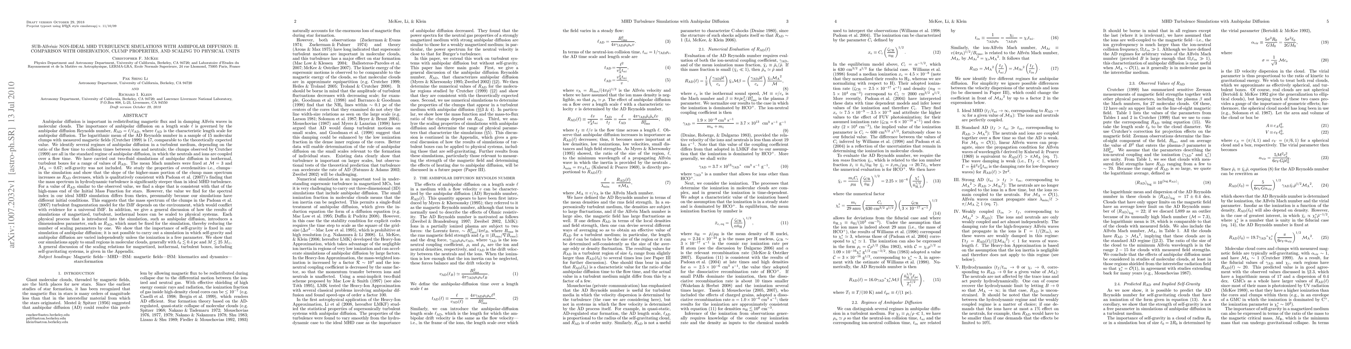 Ambipolar diffusion is important in redistributing magnetic flux and in damping Alfven waves in molecular clouds. The importance of ambipolar diffusion on a length scale $\ell$ is governed by the ambipolar diffusion Reynolds number, $\rad=\ell/\lad$, where $\lad$ is the characteristic length scale for ambipolar diffusion. The logarithmic mean of the AD Reynolds number in a sample of 15 molecular clumps with measured magnetic fields (Crutcher 1999) is 17, comparable to the theoretically expected value. We identify several regimes of ambipolar diffusion in a turbulent medium, depending on the ratio of the flow time to collision times between ions and neutrals; the clumps observed by Crutcher (1999) are all in the standard regime of ambipolar diffusion, in which the neutrals and ions are coupled over a flow time. We have carried out two-fluid simulations of ambipolar diffusion in isothermal, turbulent boxes for a range of values of $\rad$. The mean Mach numbers were fixed at $\calm=3$ and $\ma=0.67$; self-gravity was not included. We study the properties of overdensities--i.e., clumps--in the simulation and show that the slope of the higher-mass portion of the clump mass spectrum increases as $\rad$ decreases, which is qualitatively consistent with Padoan et al. (2007)'s finding that the mass spectrum in hydrodynamic turbulence is significantly steeper than in ideal MHD turbulence. For a value of $\rad$ similar to the observed value, we find a slope that is consistent with that of the high-mass end of the Initial Mass Function for stars. However, the value we find for the spectral index in our ideal MHD simulation differs from theirs, presumably because our simulations have different initial conditions. This suggests that the mass spectrum of the clumps in the Padoan et al. (2007) turbulent fragmentation model for the IMF depends on the environment, which would conflict with evidence ...