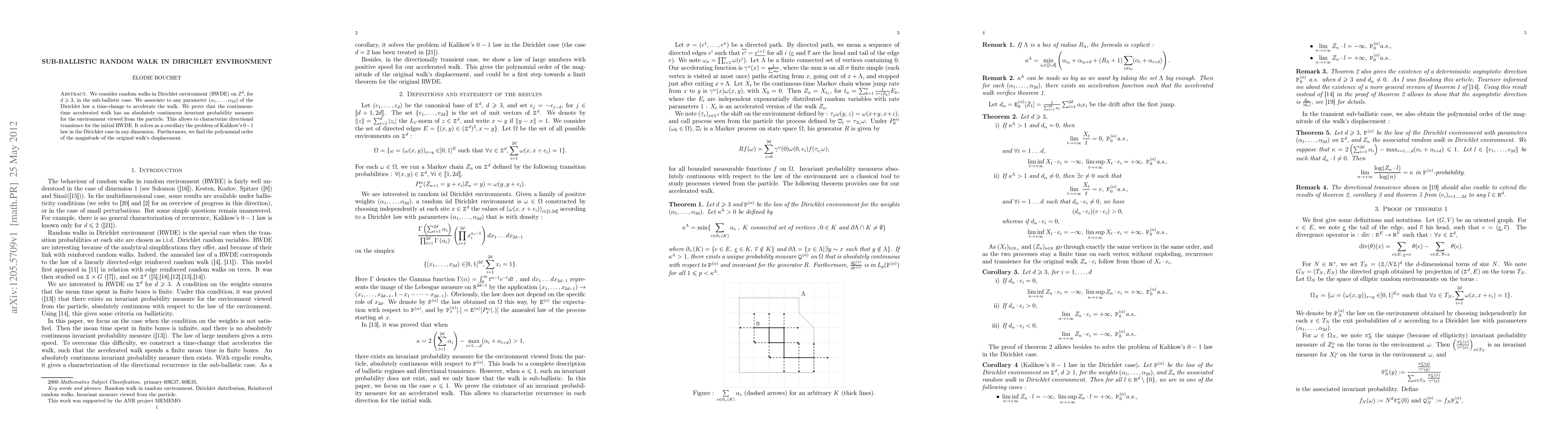 This paper studies random walks in Dirichlet environments on $\Z^d$ for $d \geq 3$ in the sub-ballistic regime, proving that the accelerated continuous-time walk has an absolutely continuous invariant measure, which characterizes directional transience and resolves Kalikow's 0-1 law in the Dirichlet case.