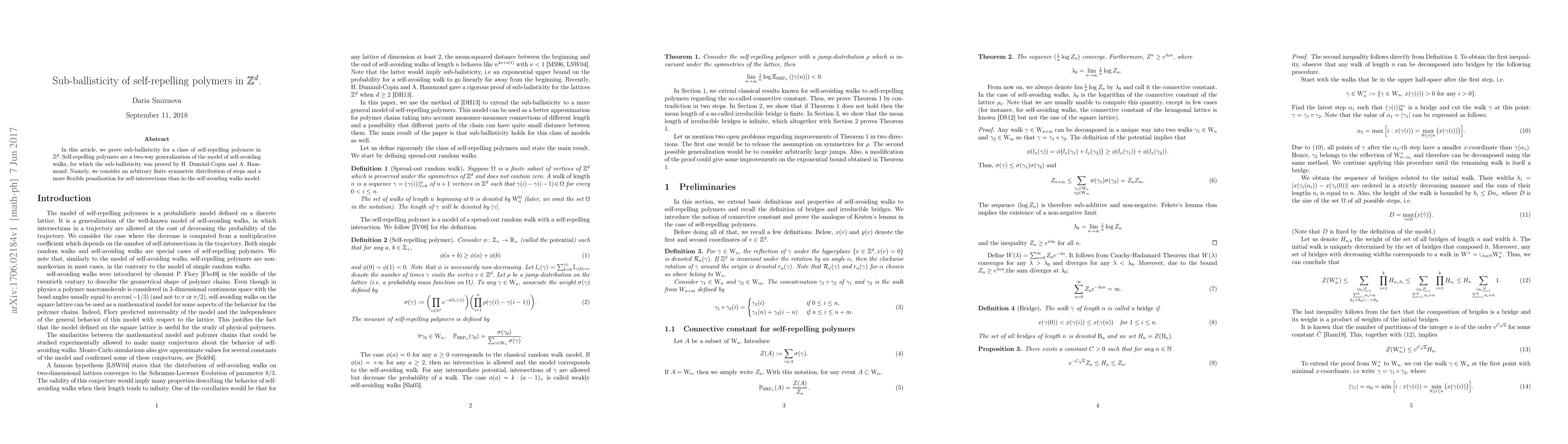 This paper proves sub-ballisticity for self-repelling polymers in Z^d, extending the model beyond self-avoiding walks with a broader range of step distributions and intersection penalties. The result generalizes previous findings by Dumnil-Copin and Hammond for self-avoiding walks.