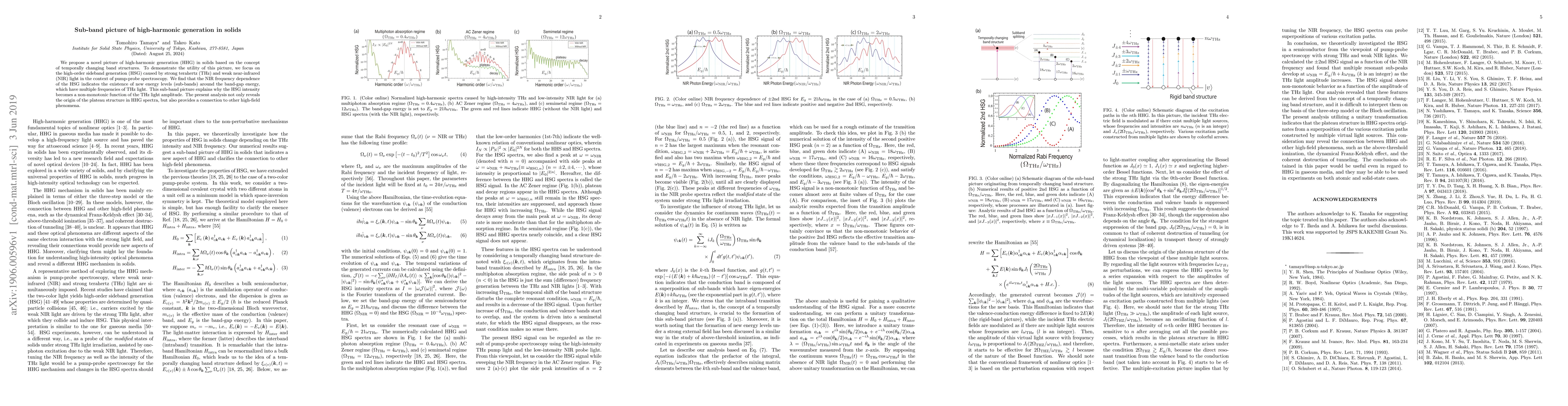 This research proposes a new framework for understanding high-harmonic generation in solids, revealing that temporally changing band structures create sub-bands around the band-gap, influencing sideband generation intensity. The study connects these sub-bands to both terahertz and near-infrared light interactions, elucidating the origin of plateau structures in HHG spectra.