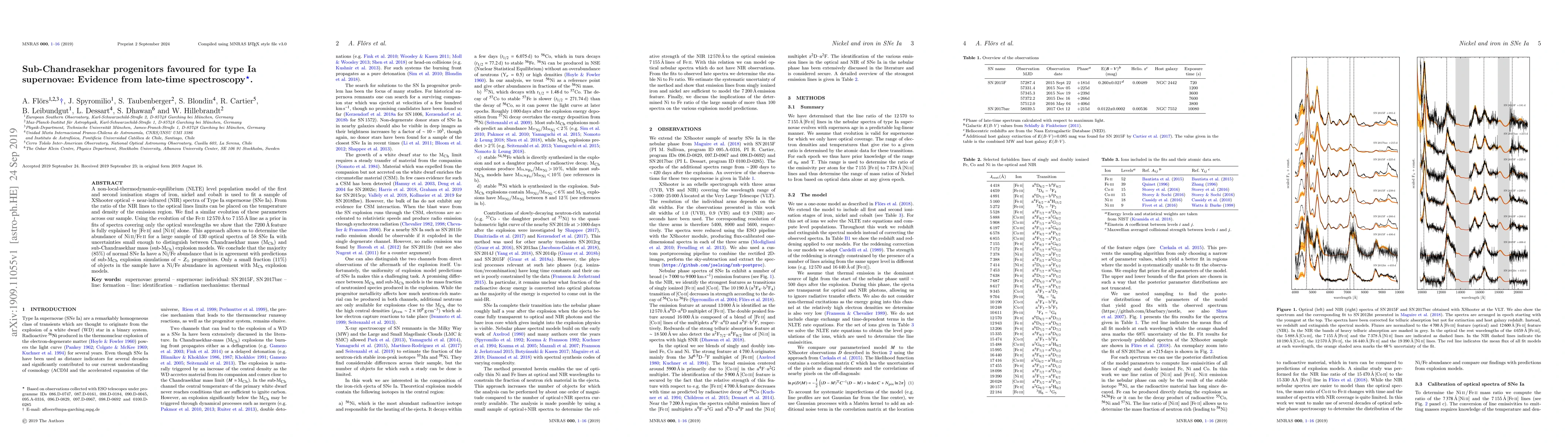 A study uses spectroscopy of Type Ia supernovae to determine that most normal SNe Ia have sub-Chandrasekhar mass progenitors, with 85% showing agreement with predictions of these models.