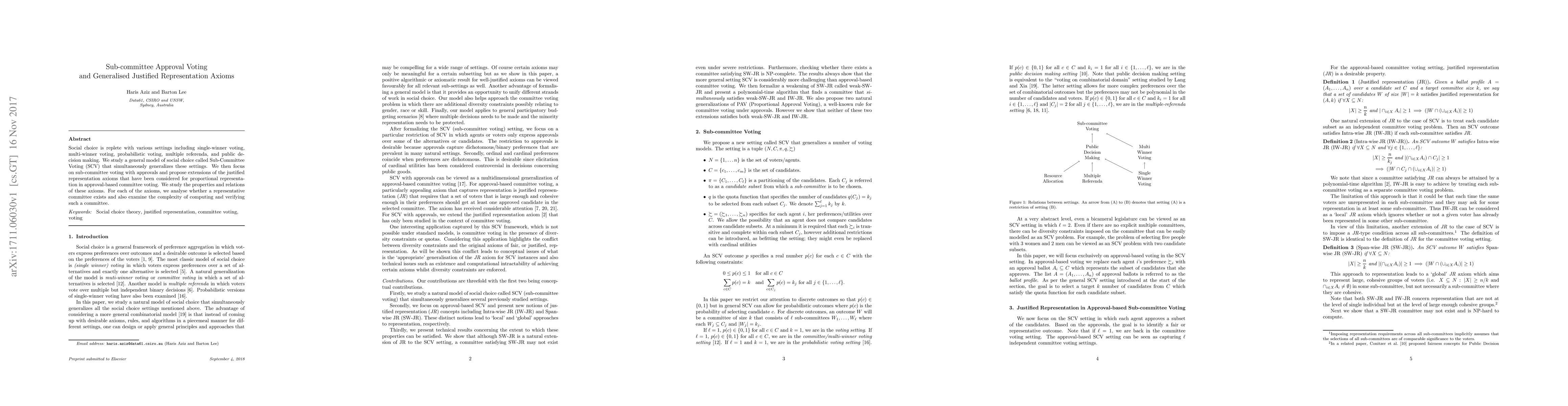 This paper explores a generalized model of social choice called Sub-Committee Voting (SCV) that encompasses various voting settings. It proposes extensions of justified representation axioms for approval-based sub-committee voting, analyzing their properties, existence of representative committees, and computational complexity.