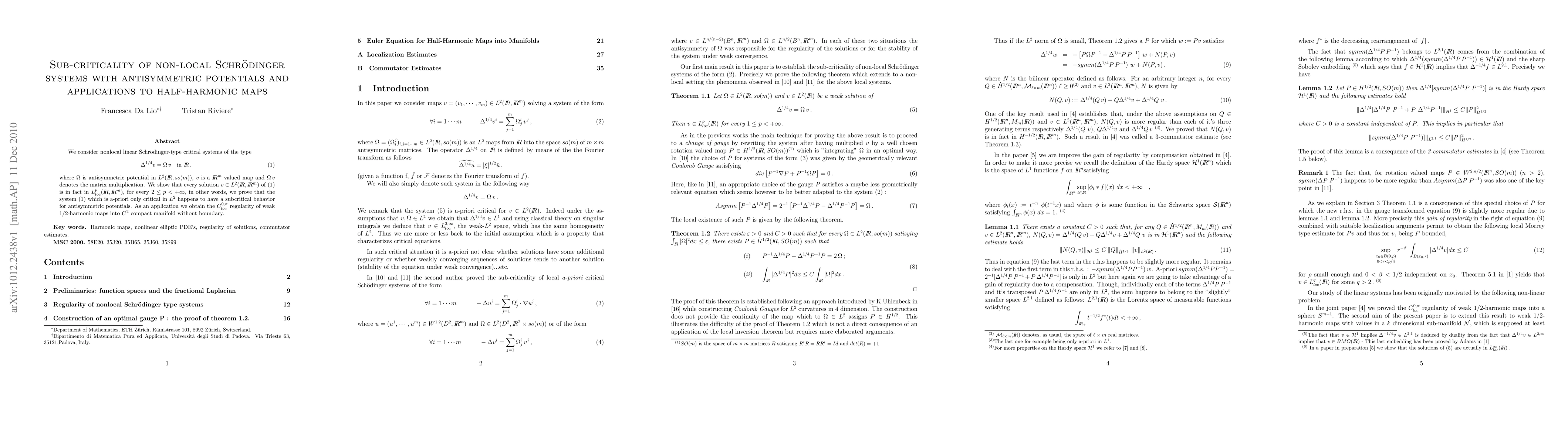 We consider nonlocal linear Schr\"odinger-type critical systems of the type \begin{equation}\label{eqabstr} \Delta^{1/4} v=\Omega\, v~~~\mbox{in $\R\,.$} \ \end{equation} where $\Omega$ is antisymmetric potential in $L^2(\R,so(m))$, $v$ is a ${\R}^m$ valued map and $\Omega\, v$ denotes the matrix multiplication. We show that every solution $v\in L^2(\R,\R^m)$ of \rec{eqabstr} is in fact in $L^p_{loc}(\R,\R^m)$, for every $2\le p<+\infty$, in other words, we prove that the system (\ref{eqabstr}) which is a-priori only critical in $L^2$ happens to have a subcritical behavior for antisymmetric potentials. As an application we obtain the $C^{0,\alpha}_{loc}$ regularity of weak $1/2$-harmonic maps into $C^2$ compact manifold without boundary.