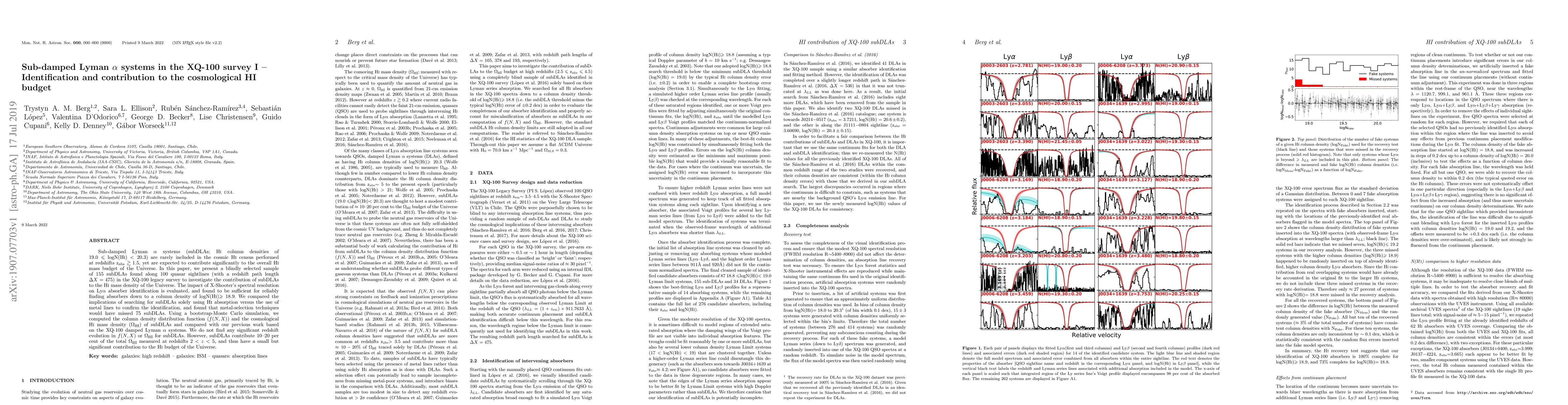 with our previous work based on the XQ-100 damped Lyman alpha systems. We do