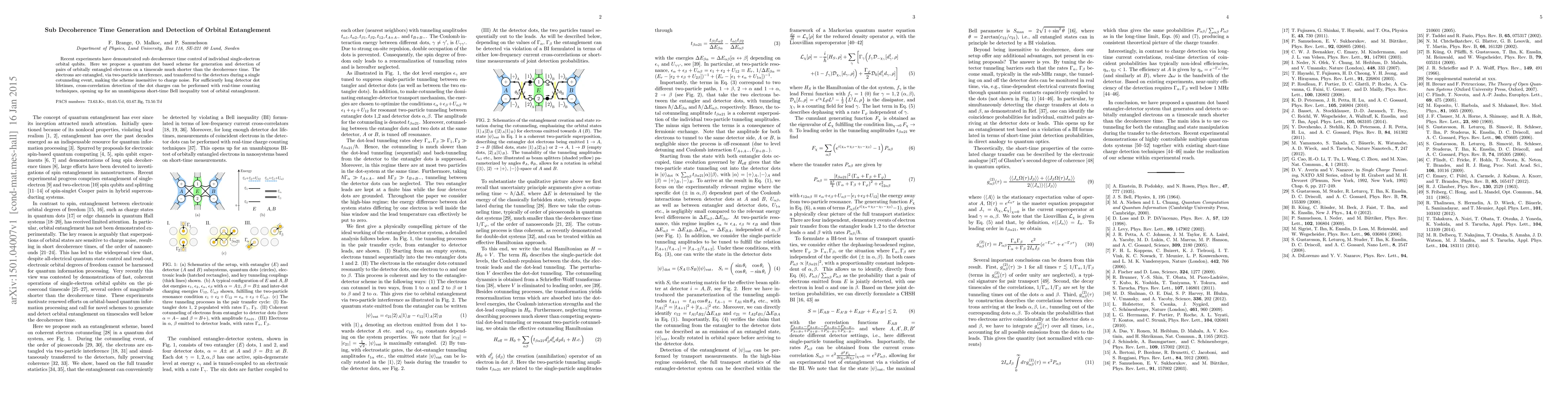 This paper proposes a quantum dot-based method for generating and detecting pairs of orbitally entangled electrons on a timescale shorter than decoherence time, utilizing cotunneling events for entanglement transfer and real-time counting techniques for cross-correlation detection, enabling a Bell inequality test.