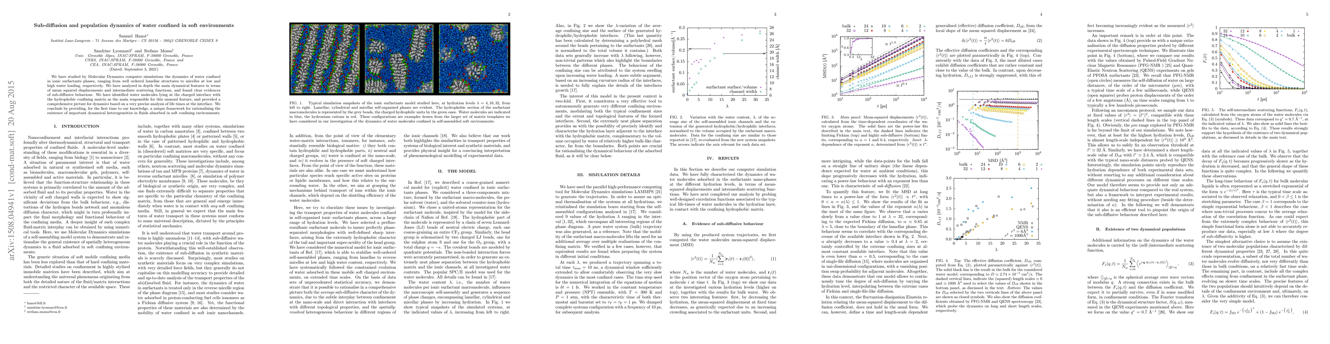This paper uses Molecular Dynamics simulations to study water dynamics in ionic surfactant phases, revealing sub-diffusive behavior primarily due to water molecules at the charged interface. The study provides a framework for understanding dynamical heterogeneities in fluids confined in soft environments.