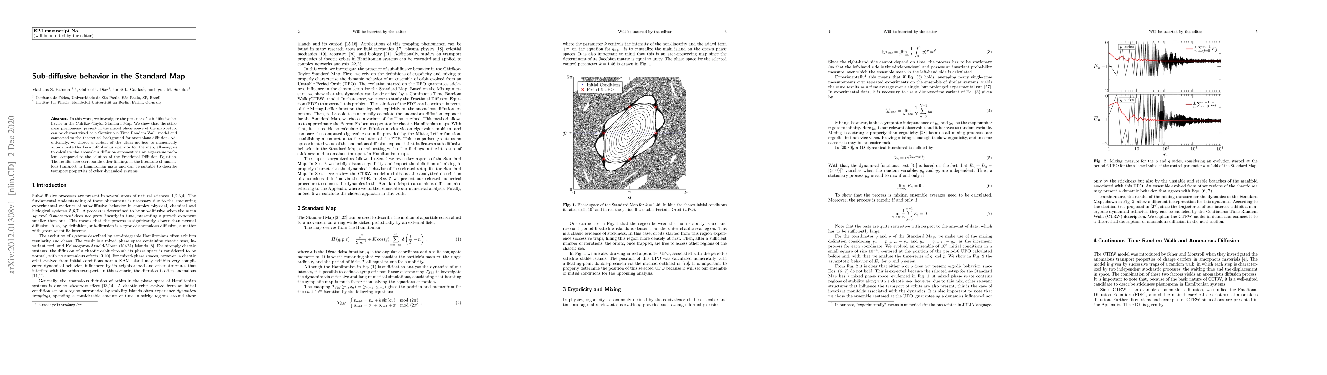 In this work, we investigate the presence of sub-diffusive behavior in the Chirikov-Taylor Standard Map. We show that the stickiness phenomena, present in the mixed phase space of the map setup, can be characterized as a Continuous Time Random Walk model and connected to the theoretical background for anomalous diffusion. Additionally, we choose a variant of the Ulam method to numerically approximate the Perron-Frobenius operator for the map, allowing us to calculate the anomalous diffusion exponent via an eigenvalue problem, compared to the solution of the Fractional Diffusion Equation. The results here corroborate other findings in the literature of anomalous transport in Hamiltonian maps and can be suitable to describe transport properties of other dynamical systems.