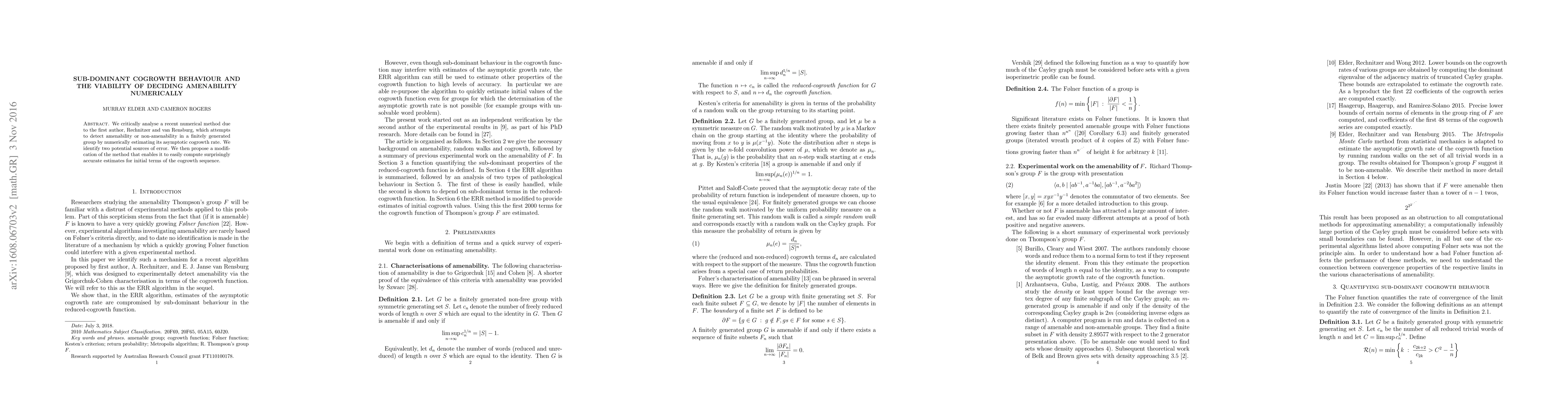 This paper critiques a numerical method for determining amenability in finitely generated groups by estimating the asymptotic cogrowth rate, identifying two error sources, and proposing a modified approach for more accurate initial cogrowth sequence estimates.