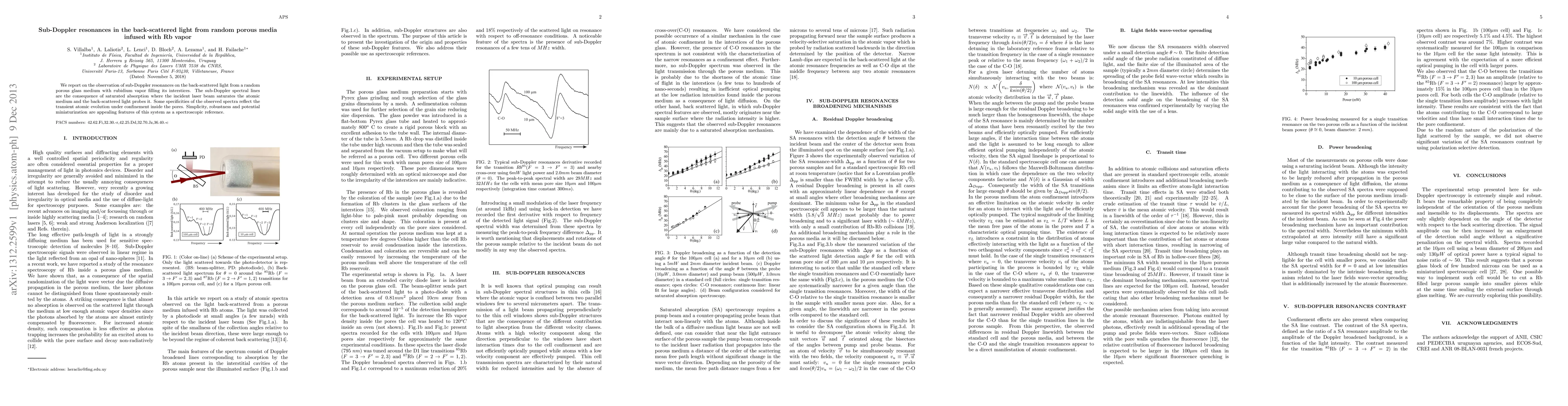 The research observes sub-Doppler resonances in back-scattered light from porous glass filled with rubidium vapor, demonstrating saturated absorption. This method could offer a compact, robust spectroscopic reference due to its simplicity and potential for miniaturization.